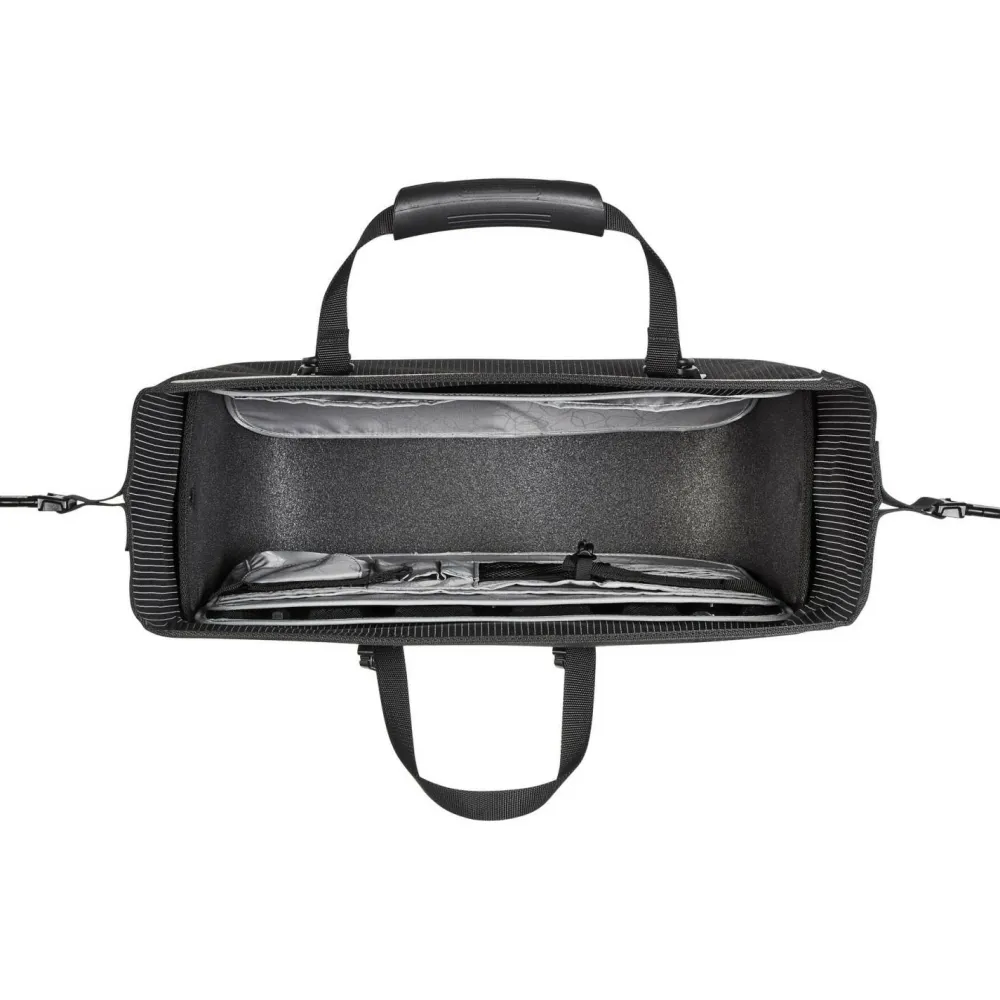 Die Office-Bag High-Vis QL2.1 Gepäckträgertasche von Ortlieb ermöglicht es Dir, Laptop und Arbeitsutensilien sicher mit dem Fahrrad ins Büro mitzunehmen. Dort angekommen, kannst Du sie bequem mit den Tragegriffen oder lässig über der Schulter tragen. Sie kombiniert die Vorzüge einer klassischen Aktentasche mit denen einer wasserdichten Gepäckträgertasche.
