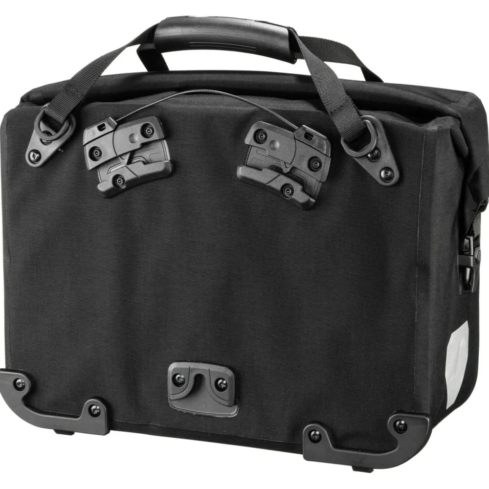 Die Office-Bag QL3.1 Gepäckträgertasche von Ortlieb ermöglicht es Dir, Laptop und Arbeitsutensilien sicher mit dem Fahrrad ins Büro mitzunehmen. Dort angekommen, kannst Du sie bequem mit den Tragegriffen oder lässig über der Schulter tragen. Sie kombiniert die Vorzüge einer klassischen Aktentasche mit denen einer wasserdichten Gepäckträgertasche.