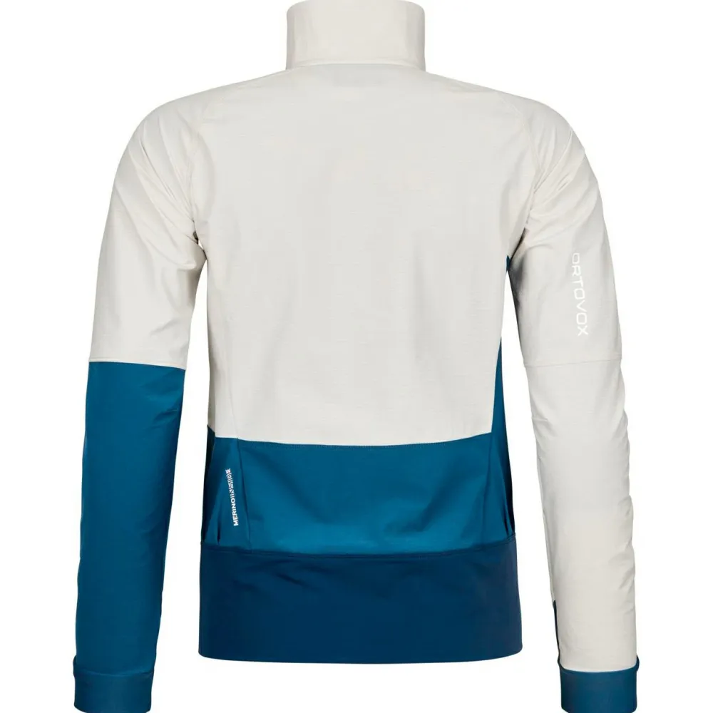 Die Women’s Punta Berrino– Softshell-Jacke von Ortovox ist das ideale Kleidungsstück für passionierte Skitourengeher. Diese Jacke überzeugt durch ihre Leichtigkeit, ihre hohe Atmungsaktivität, und den umfassenden Witterungsschutz, den sie bietet.Das besondere an der Women’s Punta Berrino– Jacke ist dabei der Merinowollanteil im Gewebe, der im Inneren und damit direkt auf der Haut liegt. Das gibt dem ohnehin bereits hohen Tragekomfort nochmal einen entscheidenden Boost, denn die Wolle ist sehr weich, temperaturregulierend, und beugt der Bildung unangenehmer Gerüche -auch bei schweißtreibender Aktivität- vor.