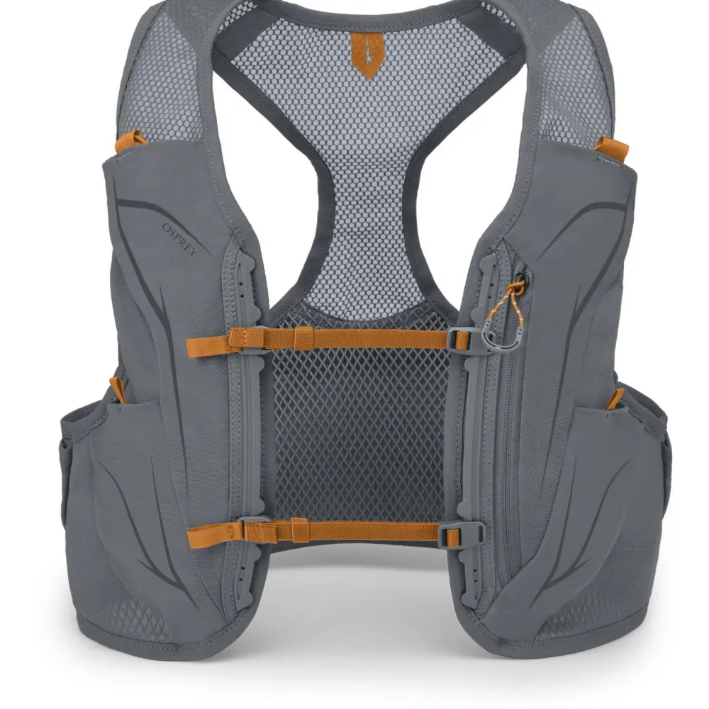 Das Material ist robust und wasserabweisend. Dank Mesh-Einsatz am Rücken staut sich keine Feuchtigkeit an. Deine Regenjacke kannst Du ideal im Hauptfach der Weste verstauen. Zahlreiche Außenfächer und Taschen bieten erweiterten Stauraum für Energieriegel und Co. In den beiden Taschen auf der Vorderseite lassen sich Trinkflaschen unterbringen. Dein Smartphone hat eine separate Tasche, damit Du es stets griffbereit hast. Mit den atmungsaktiven Schulterträgern bietet die Weste einen hohen Tragekomfort bei schweißtreibenden Läufen. Die westenähnliche, körpernahe Passform sorgt für einen optimalen Sitz und ein geringes Gewicht. Ein durchdachtes Konzept!