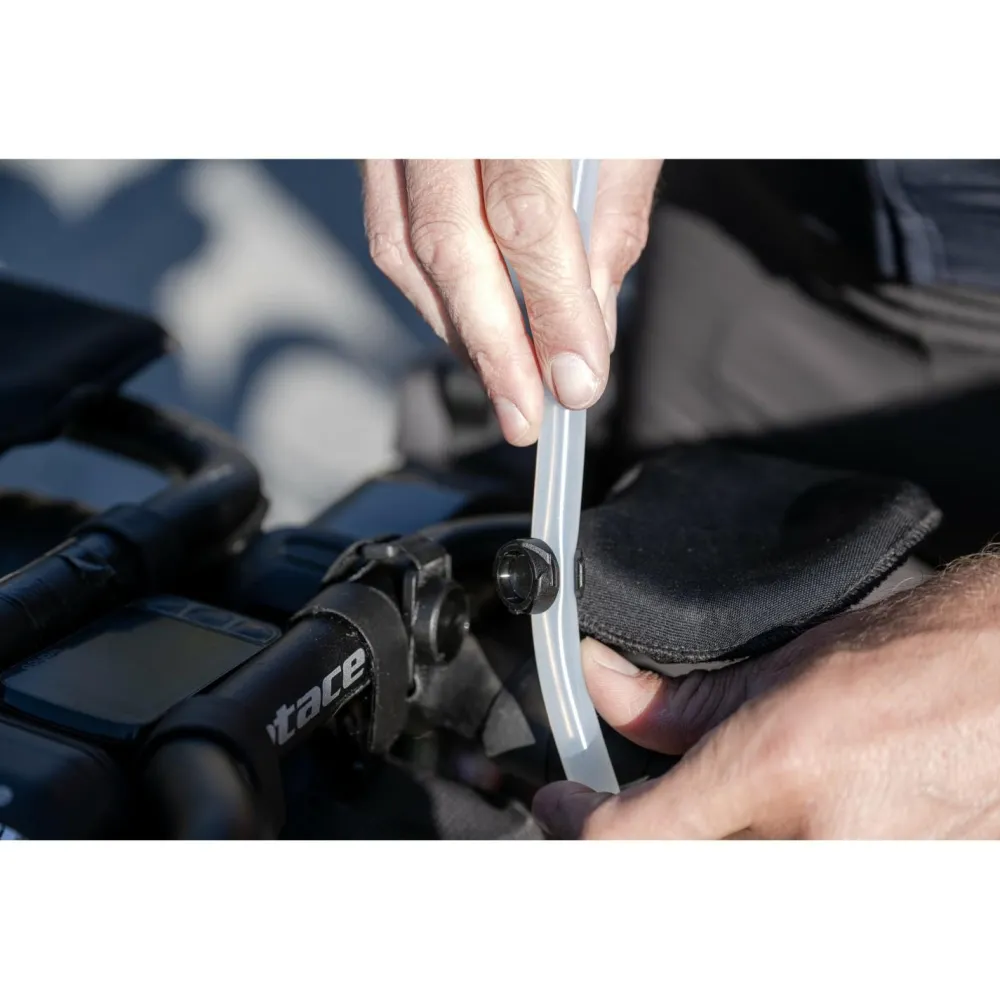 Gefertigt aus BPA-freiem Kunststoff, ist sie einfach zu befüllen und zu reinigen. Der Trinkschlauch wird durch die Öffnung an der Rückseite der Tasche geführt und kann am Lenker oder an Aufliegern fixiert werden – so trinkst Du während der Fahrt, ohne die Hände vom Lenker zu nehmen.
