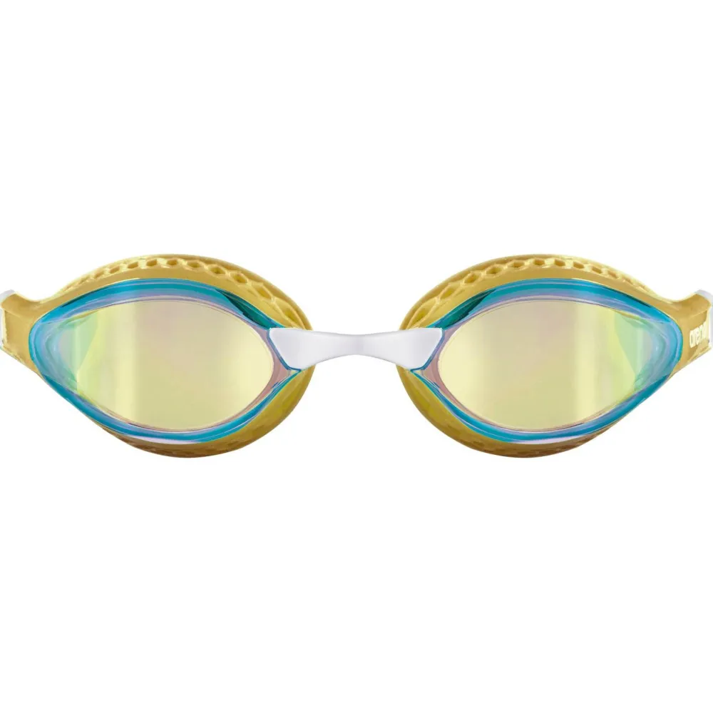 Mit ihren verspiegelten Gläsern aus Polycarbonat eignet sich die Airspeed Mirror Schwimmbrille von Arena hervorragend für den Einsatz im Schwimmbad und in freien Gewässern. Die harten Gläser schützen dabei sehr gut vor UV-Strahlung und sorgen mit ihrem hydrodynamischen Design für sportliche Performance. Arena stattet die Schwimmbrille mit einem austauschbaren Nasensteg und einem verstellbaren Kopfband aus Silikon aus. Die innovative Luftdichtung garantiert eine ideale Passform.