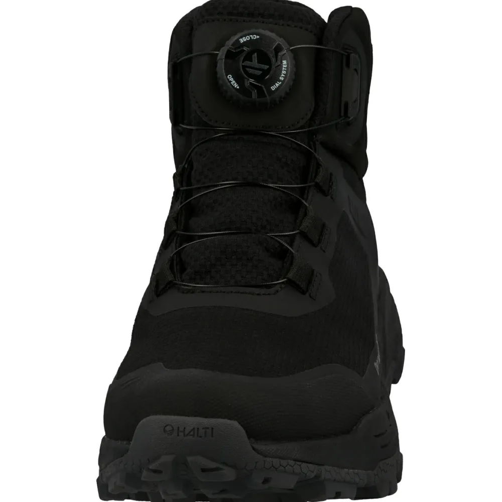 Die Fara Mid 3 DX von Halti sind vielseitige Wanderschuhe für den allgemeinen Outdoor-Einsatz. Ihr Obermaterial besteht aus großteils recyceltem Softshell mit TPU-Print und flexiblem Lycra-Futter. Hinzu kommt die DrymaxX-Membran mit Sockenkonstruktion, die die Füße bei jedem Wetter trocken hält. Diese Membran hat die gleichen wasserdichten, winddichten und atmungsaktiven Eigenschaften wie die bekannten Marken-Membranen. Die GripmaxX Hiker Gummilaufsohle bietet guten Halt auf unebenem und losem Gelände, während die stoßdämpfende Phylon-Zwischensohle mit ihrer Leichtigkeit und Flexibilität für Sneaker-ähnlichen Komfort beim Wandern sorgt!