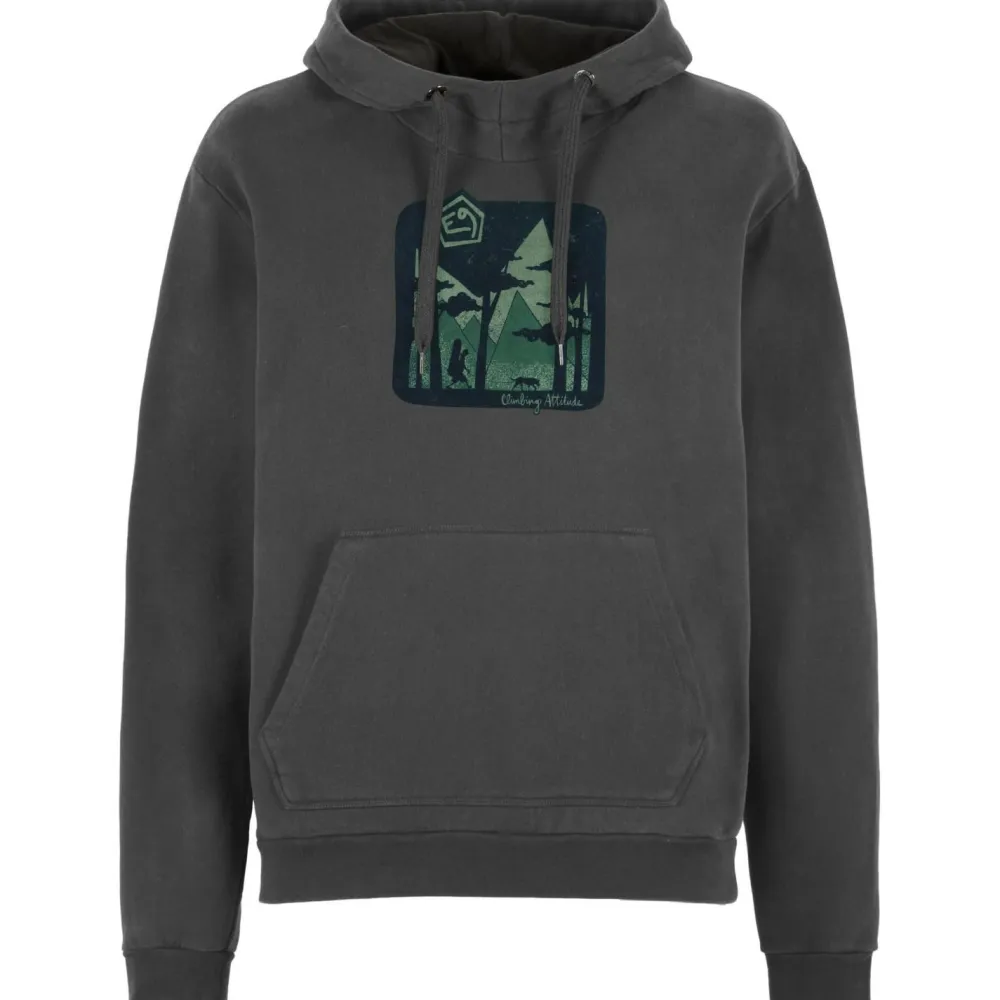 Mit dem E9 Hood bist Du im Alltag und beim Bouldern bestens ausgestattet: Atmungsaktives Bio-Baumwoll-Material trifft auf durchdachte Stretch-Details – so genießt Du Bewegungsfreiheit und angenehmen Tragekomfort. Praktische Extras wie die Kängurutasche, eine Kapuze mit Kordelzug und der markante Frontprint sorgen für entspannten Look in jeder Situation.