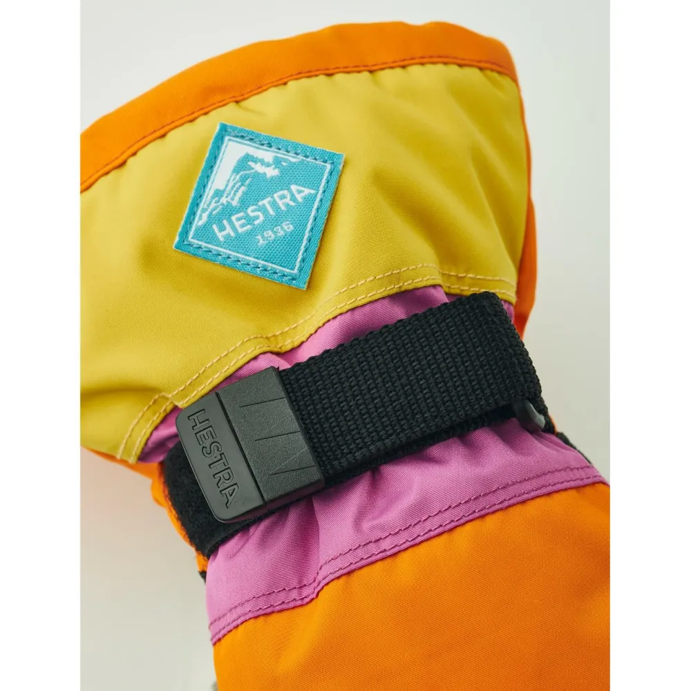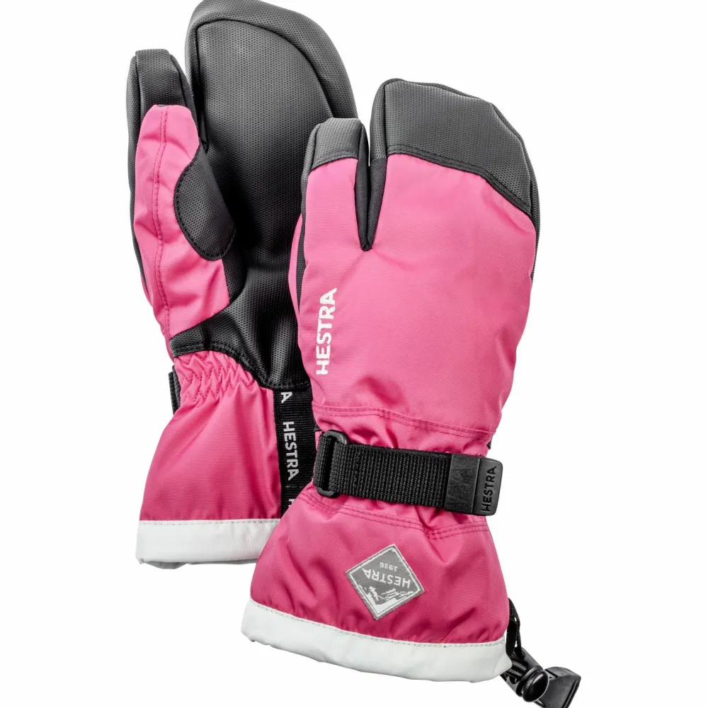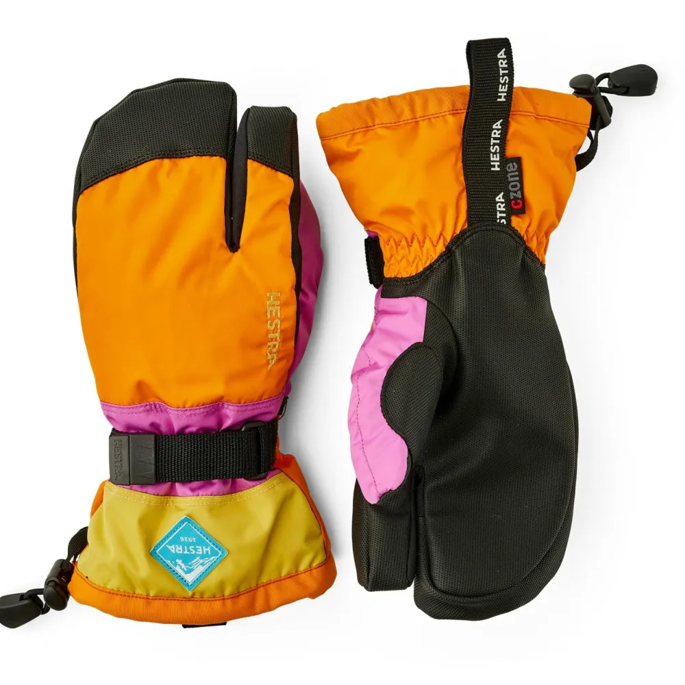 Die Kid’s Gauntlet CZone 3 Finger von Hestra sind wasserdichte und atmungsaktive 3-Finger-Fäustlinge für Winterpsort und Freizeit.Mit der 3-Finger-Konstruktion bieten sie eine Kombination aus der Wärmeleistung eine Fäustlings und der Feinfühligkeit eines Fingerhandschuhs. Die Handschuhe sind mit einer wind- und wasserdichten und atmungsaktiven CZone-Membran ausgestattet, damit die Hände auch bei Nassschnee trocken bleiben und Feuchtigkeit schnell nach außen geleitet wird. Eine synthetische Isolation und gebürstetes Futter sorgen zusätzlich für Wärme und ein angenehm weiches Tragegefühl. Dank der breiten Bündchen und den doppelten Verschlüssen mit Klettverschluss und Kordelzug wird ein guter Übergang zu den Ärmeln erzeugt.Ob Skiurlaub, Schulweg, Schlittenfahren oder Iglobau im eigenen Garten – mit den Kid’s Gauntlet CZone 3 Finger haben Kinder warme und verlässliche Handschuhe an ihrer Seite.