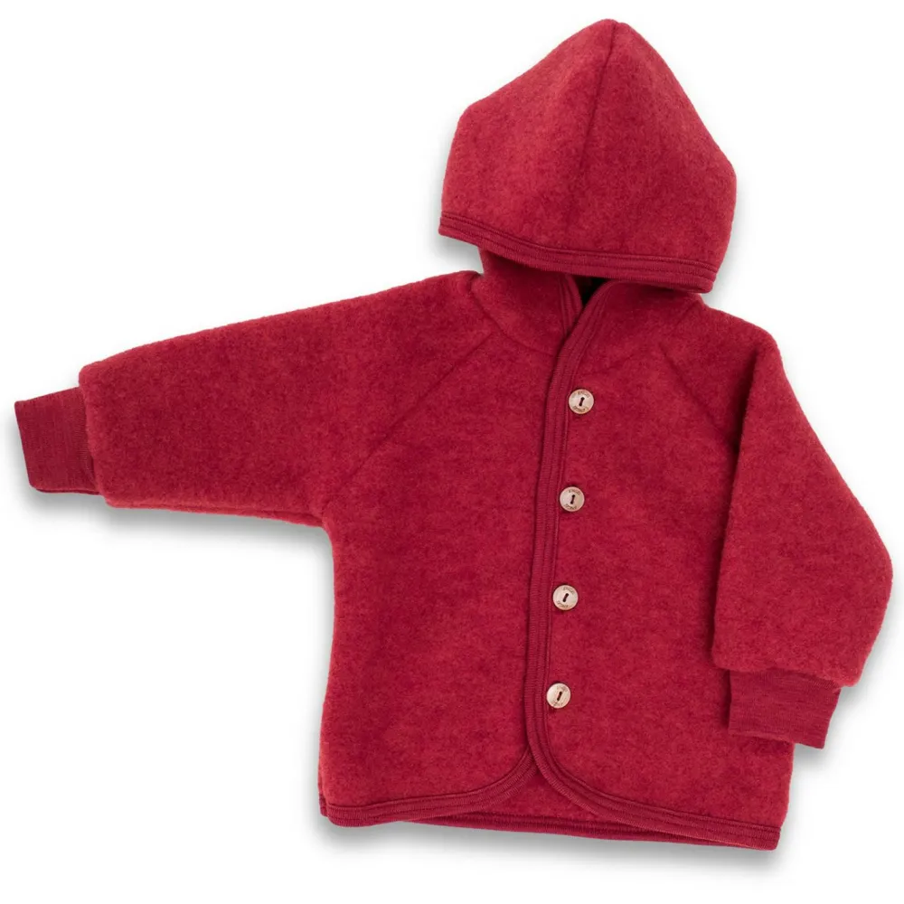 Natur pur: die Engel Kinder Kapuzenjacke mit Holzknöpfen! Die weiche Wollfleecejacke aus reiner Schurwolle ist ideal für kühle Tage. Das kratzfreie Material wärmt zuverlässig bei tiefen Temperaturen und sorgt dafür, dass es den Kids darunter nicht zu heiß wird! Dabei ist die Wolle super strapazierfähig – Schmutz lässt sich ganz einfach abbürsten. Die schönen Holzknöpfe und eine Kapuze machen das hübsche, kuschelige Design perfekt!