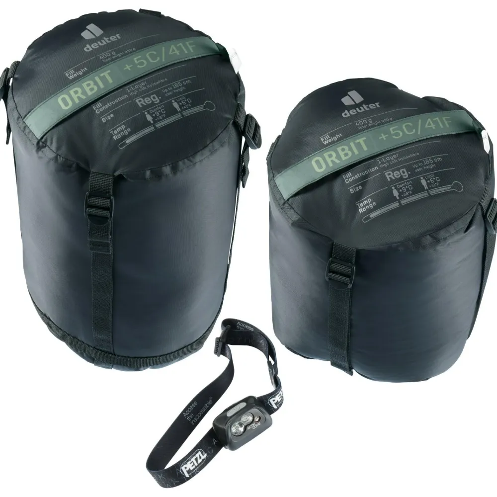 Der Deuter Orbit +5°C ist der ideale Kunstfaserschlafsack für Sommernächte und milde Temperaturen. Mit seiner High-Loft Hollowfibre-Füllung bietet er ein angenehmes Schlafklima und eine gleichmäßige Wärmeverteilung. Das Außenmaterial besteht aus recyceltem Material und ist nahtlos verarbeitet, um die Temperaturleistung zu optimieren und das Eindringen von Feuchtigkeit zu verhindern.