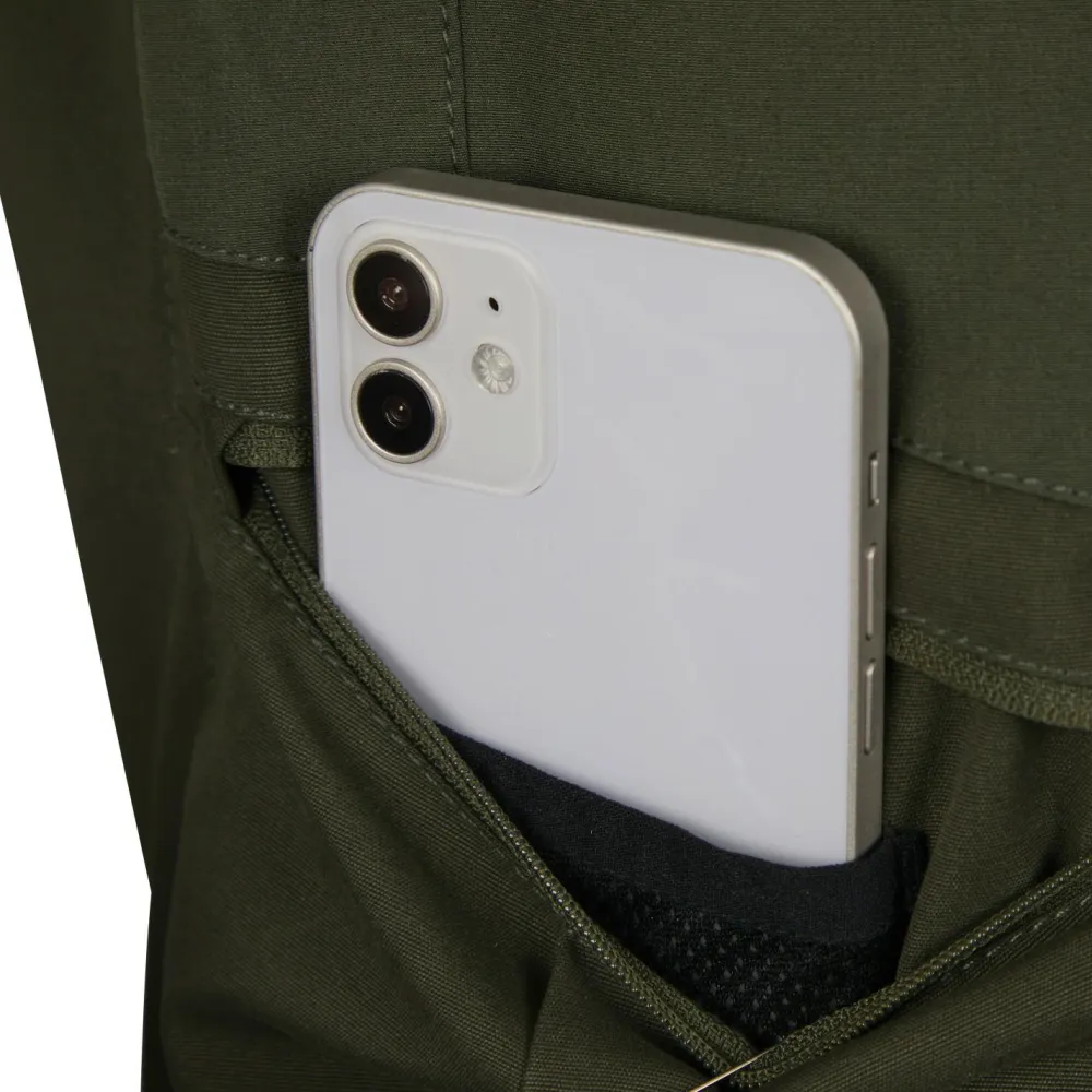 Neben den beiden Fronttaschen befinden sich noch zwei geräumige Beintaschen mit Reißverschluss an der SälkaSt.Tour Shorts. In der rechten dieser Taschen ist noch eine zusätzliche Mesh-Tasche eingenäht, in der sich das Smartphone perfekt verstauen lässt. Dank dieser Vielzahl an Taschen lassen sich die vielen Kleinteile, die es bei einer ausgedehnten Wandertour oder Trekkingtour braucht, übersichtlich, sicher und griffbereit in der Hose verstauen.
