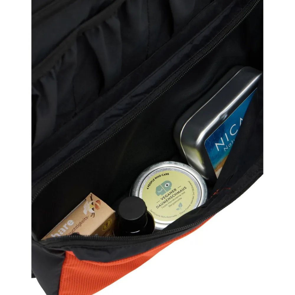 Der Socotra von Vaude ist ein wickelbarer Kulturbeutel aus robustem und PVC-freiem Planenmaterial. Er bietet eine große Öffnung und eine übersichtliche Fächeraufteilung mit diversen Steckunterteilungen und zwei separaten Reißverschluss-Fächern. Zur Grundausstattung des Socotra Kulturbeutels gehören ein Spiegel, ein Zahnbürstenhalter und ein Aufhängehaken.