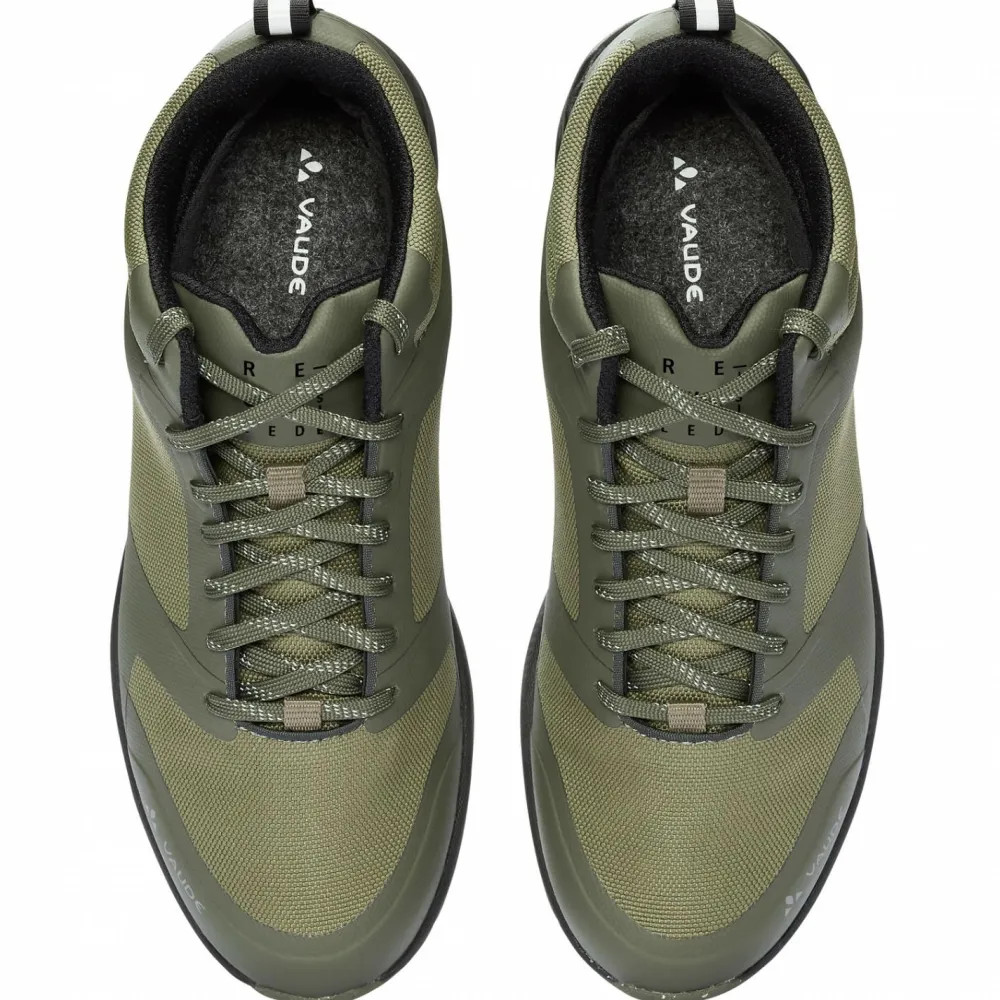 Den TVL Asfalt Dualflex Winter STX von Vaude sollten sich alle Mountainbiker, Fahrradpendler und Bikepacker mal anschauen, die ganzjährig radeln und dabei keine Click-Pedale nutzen wollen. Denn der Schuh kommt mit der perfekten Ausstattung für ungemütliche Wetterphänomene: er ist, dank SympaTex-Membran, wasser- und winddicht, dabei aber dennoch atmungsaktiv. Die Füße bleiben also trocken und sind vor kalter Zugluft geschützt. Damit sie aber auch bei wirklich niedrigen Temperaturen warm bleiben, ist der TVL Asfalt Dualflex Winter STX auch noch mit einem wärmenden PrimaLoft-Innenfutter ausgestattet! Und weil das unerschrockene Winterradler-Publikum gerne auch länger im Sattel sitzt, weist der Schuh auch einen hohen Tragekomfort auf. Dazu trägt die anatomisch geformte, herausnehmbare Einlegesohle bei, aber auch die auf Powertransfer und Komfort ausgelegte Dualflex-Außensohle. Dem Anspruch an ressourcenschonendes Wirtschaften seitens Vaudes Rechnung tragend weist der Schuh einen hohen Anteil an recyceltem Material auf.