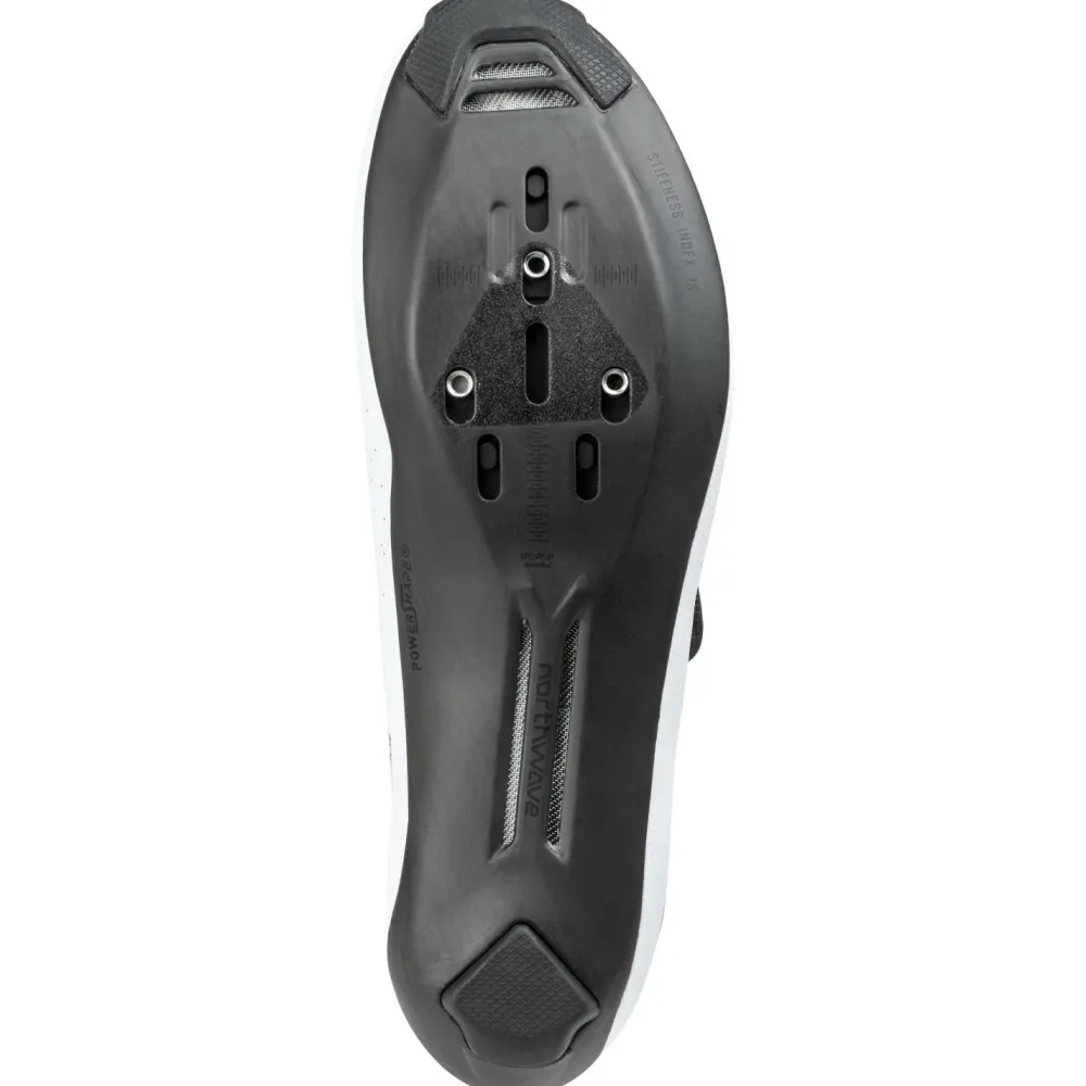 Das Prunkstück dieses in Italien von Hand gefertigten High-End Rennradschuhs ist die komplett neu entwickelte Powershape HT Sohle. Sie besteht aus 100 % unidirektionalem Carbon, um die Kraftübertragung auf die Pedale zu optimieren und so den Energieverbrauch zu minimieren und den Muskeleinsatz zu verringern. Das Geheimnis der Sohle liegt in der exklusiven High-Tail-Struktur mit asymmetrischem Design, um sich an die äußere Ferse anzupassen und gleichzeitig eine optimale Unterstützung der inneren Ferse zu garantieren. Das patentierte PowerShape-System gibt dem Fußgewölbe zusätzlichen Halt und Komfort. Die Gummiabsätze an den Fersen sind austauschbar, um die Lebensdauer der Schuhe zu verlängern. Größere Lüftungsöffnungen erhöhen die Luftzirkulation.