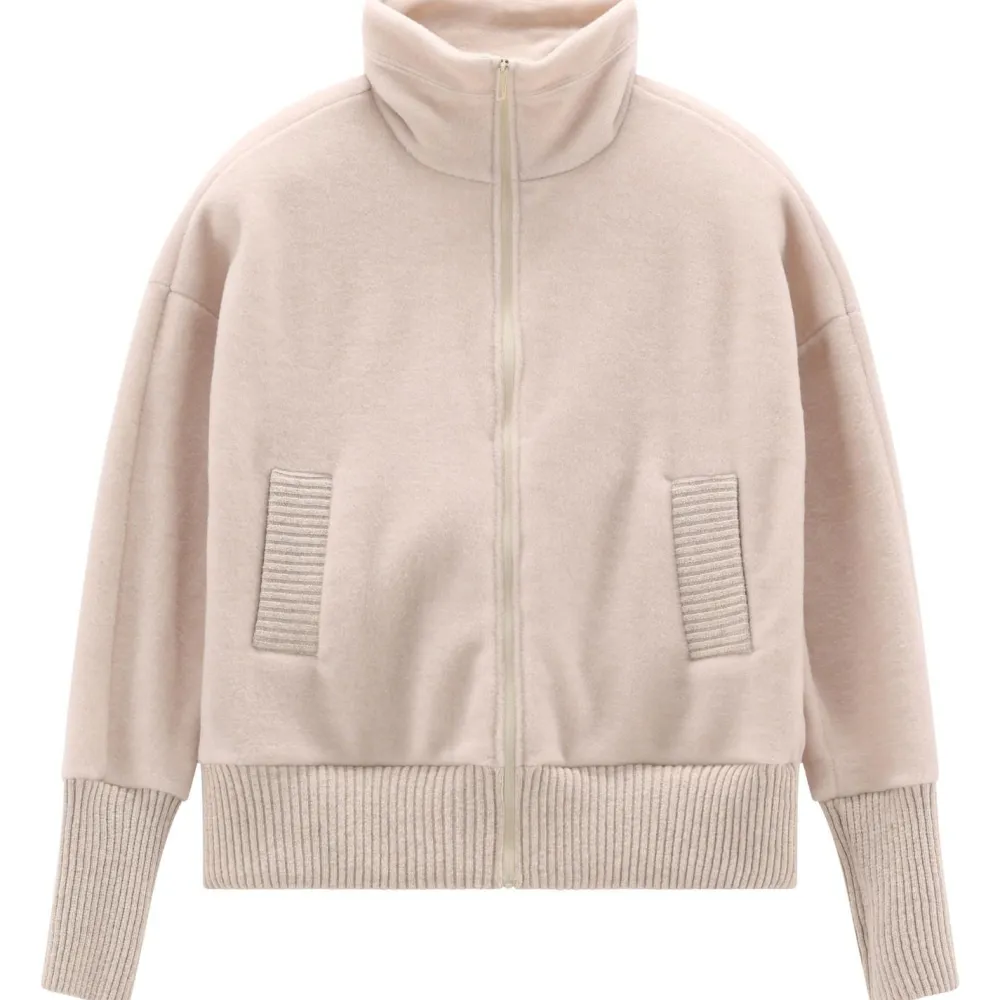 Mit ihrem hohen, dicken Stehkragen eignet sie sich gut als Pullover für kalte Wintertage, und als Jacke für die Übergangsjahreszeiten. Die enganliegenden Ärmelbündchen und der elastische Saum sorgen dafür, dass auch dort keine Wärme entfliehen kann.
