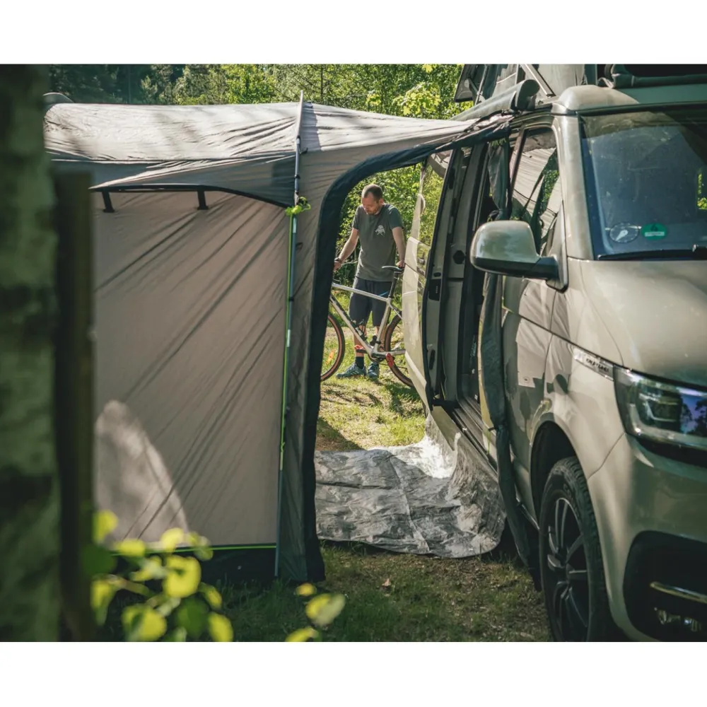 Das Pine Hills Busvorzelt bietet zahlreiche Komfort- und Zusatzfunktionen, die Dein Campingerlebnis verbessern. Mit drei Eingängen wird der Zugang erleichtert und die Flexibilität erhöht. Der Moskitonetzeinsatz schützt Dich vor lästigen Insekten, während der Kabelausgang die Nutzung von elektrischen Geräten im Zelt ermöglicht. Der im Lieferumfang enthaltene Packsack macht den Transport und die Lagerung des Zelts zum Kinderspiel—ideal für reisende Camper*innen wie Dich.