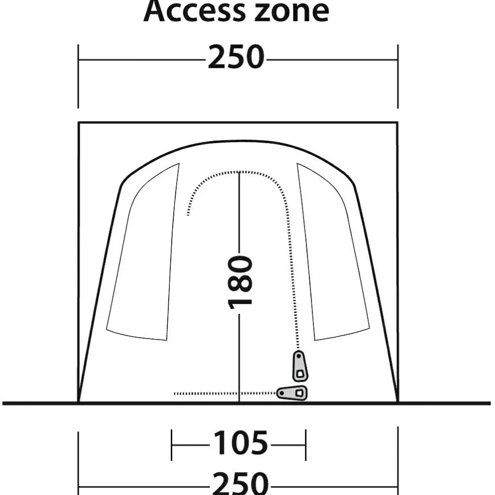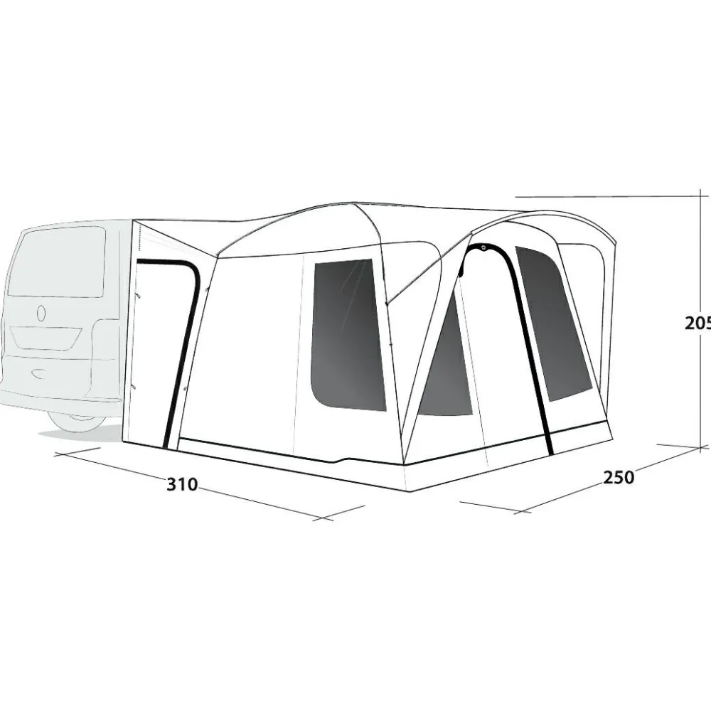 Die Konstruktion des Pine Hills Busvorzelts ist auf einfache Handhabung und Stabilität ausgelegt. Mit dem leichten und dennoch robusten Duratec Fiberglasgestänge lässt sich das Zelt mühelos aufbauen. Die großzügigen Maße von 250 cm Länge, 250 cm Breite und 205 cm Höhe bieten ausreichend Platz für Komfort und Funktionalität.