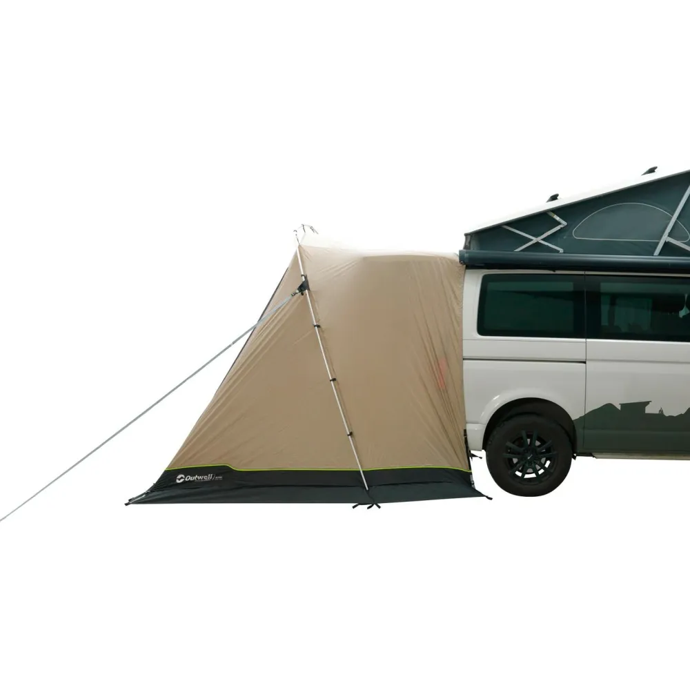 Das Outwell Sand Van ist ein leichtes, statisches Busvorzelt, das speziell für die Heckklappe von Campervans entwickelt wurde. Es eignet sich gut für kurze Pausen unterwegs oder als Aufenthaltsbereich auf dem Stellplatz. Das Außenzelt aus Outtex 3000 Select CARE Polyester schützt mit 3000 mm Wassersäule vor Regen. Das Vorzelt lässt sich schnell an der Heckklappe befestigen und bei Bedarf ebenso leicht wieder entfernen.