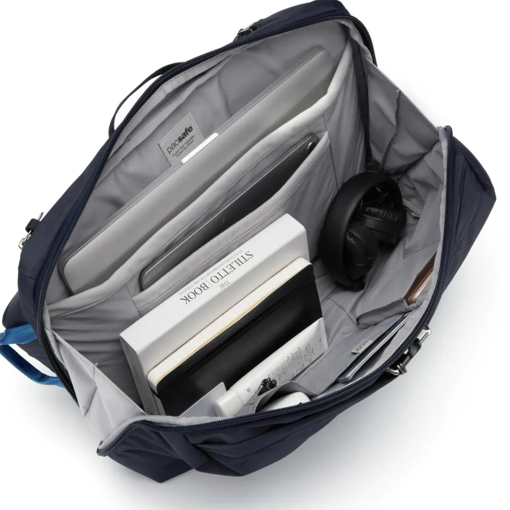 Dieser Rucksack ist vollgepackt mit Pacsafe-Sicherheitsfunktionen, die Dir ein beruhigendes Gefühl geben. Die versteckte Aufbewahrungstasche und das RFIDsafe-Material schützen Deine Wertsachen vor Diebstahl und elektronischem Datenklau. Der Carrysafe-Slashguard-Gurt mit Dyneema und das eXomesh-Slashguard-Gewebe bieten zusätzlichen Schutz vor Aufschlitzen.