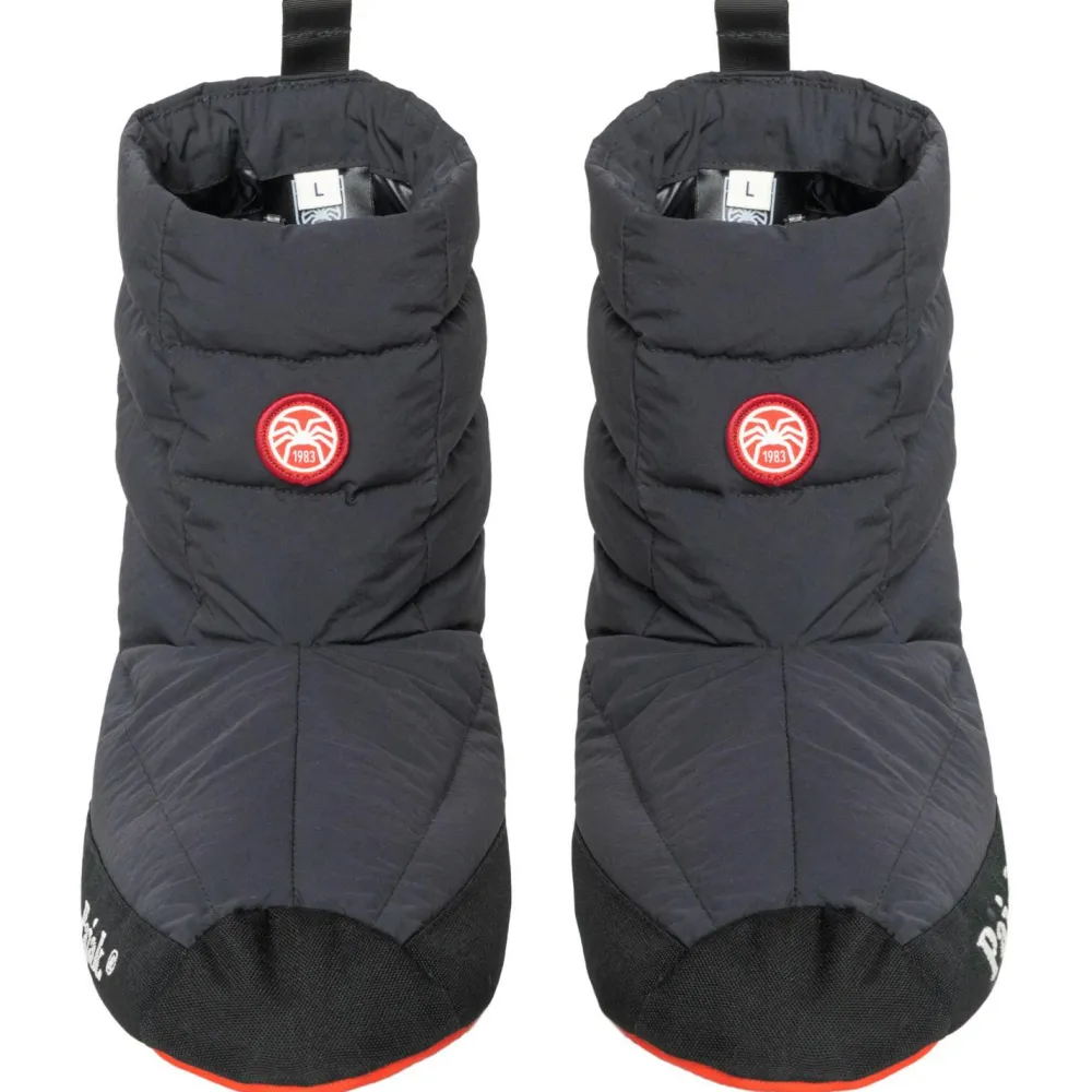 Gefüllt mit hochwertiger 750 cuin polnischer Gänsedaune bieten die Moon Daunenschuhe von Pajak zuverlässige Wärme bei minimalem Gewicht. Das robuste Cordura-Außenmaterial mit DWR-Behandlung schützt vor Feuchtigkeit, während die EVA-Innensohle effektiv gegen Bodenkälte isoliert. Die Vibram-Sohle sorgt für sicheren Halt auf Schnee oder gefrorenem Untergrund – ideal für kurze Wege außerhalb des Zelts. Dank ihrer kompakten Bauweise lassen sich die Booties leicht verstauen und sind ein praktischer Begleiter für minimalistisches Wintercamping.