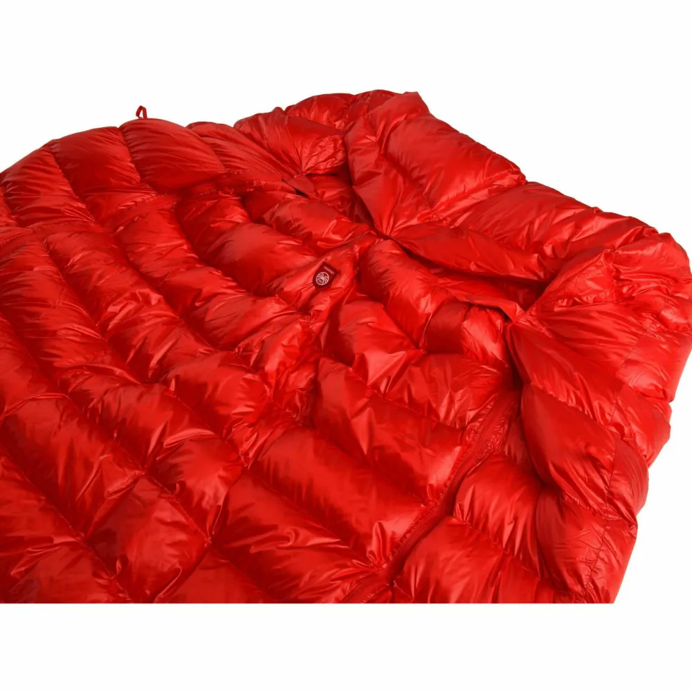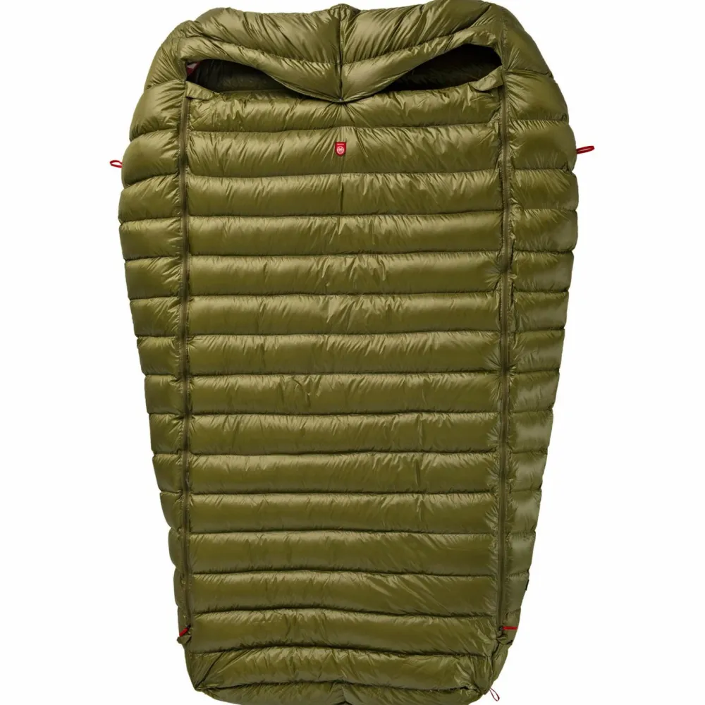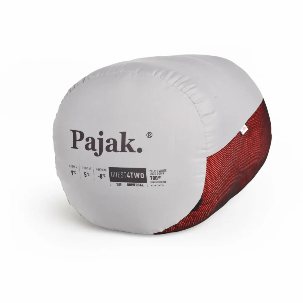 Der Quest Fortwo von Pajak ist ein überragender Schlafsack für alle Pärchen, welche auch in der Nacht unzertrennlich sind. Er verfügt auf beiden Seiten über Reißverschlüsse, wodurch man seinen Partner nicht aufweckt, falls man einmal früher aufsteht oder in der Nacht mal Raus muss. Die Kapuzen sind verstellbar und reduzieren den Wärmeverlsut auf ein Minimum. Eine X-Kammer-Konstruktion hält die Entendaunenfüllung auf Position und sorgt somit für eine gleichmäßige Isolation.