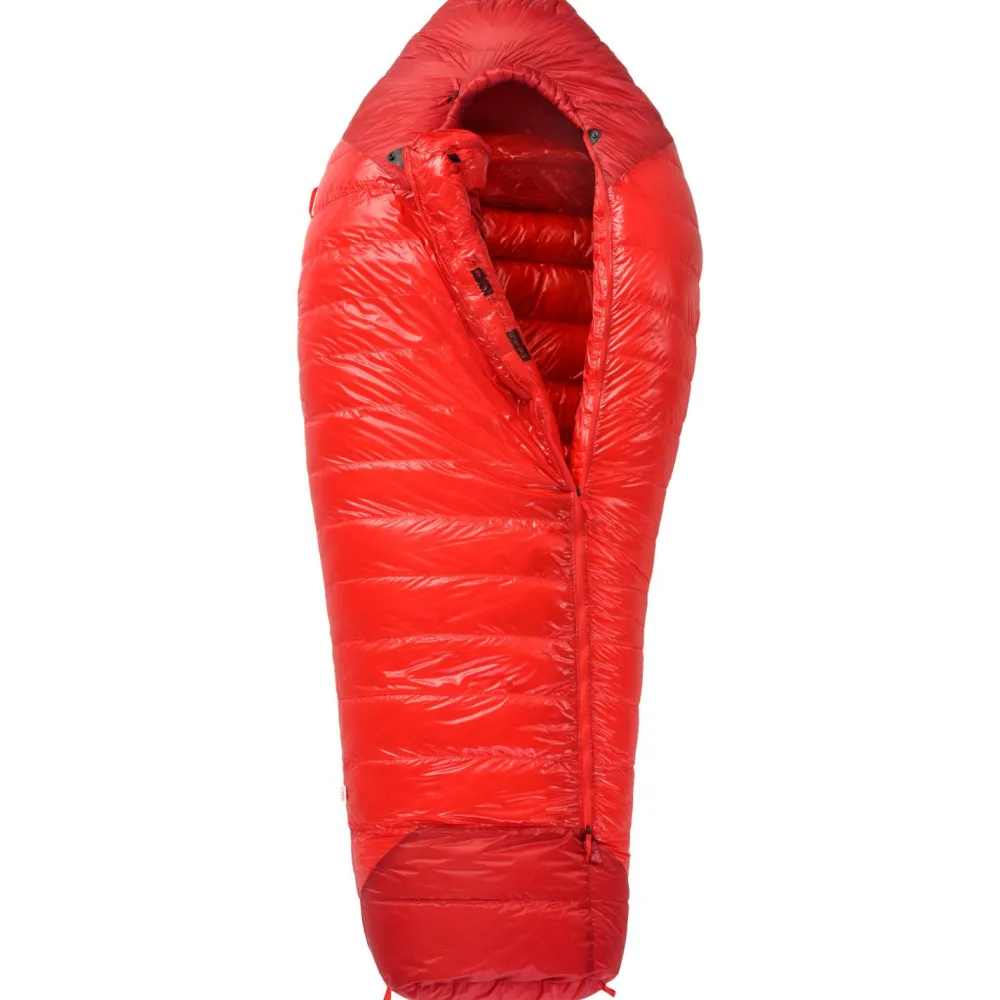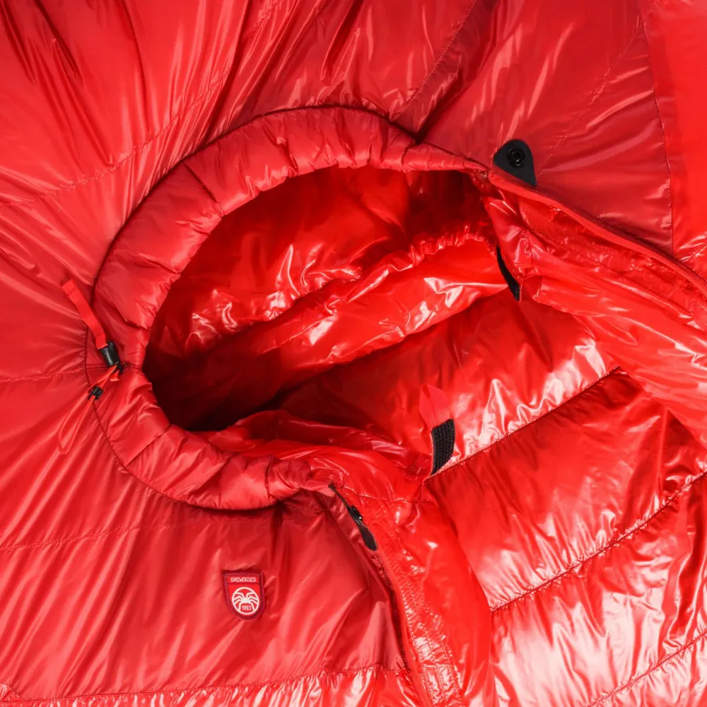 Die polnischen Daunen-Spezialisten von Pajak haben mit dem passend benannten Radical 16Z einen superleichten, bestens komprimierbaren, dabei aber sehr warmen Schlafsack im Programm, der mit dem Gedanken an winterliche Expeditionen im Himalaya entworfen wurde. Eine Komforttemperatur von -31°C ist definitiv eine Ansage!Das Außenmaterial aus leichtem, aber sehr widerstandsfähigem GELANOTS Ultra Light Rip Stop Shell-Polyamid schützt die kostbare Daunenfüllung zuverlässig. Das Packmaß im Kompressionssack liegt bei 39 x 25cm, sodass auch der Transport leicht und bei einem relativ geringen Volumen möglich ist. Die massive, 1050g schwere Füllung aus RDS-zertifizierter 900er Gänsedaune sorgt für ausreichend Wärmeleistung auch wenn die Temperaturen sehr weit unter dem Gefrierpunkt stehen.