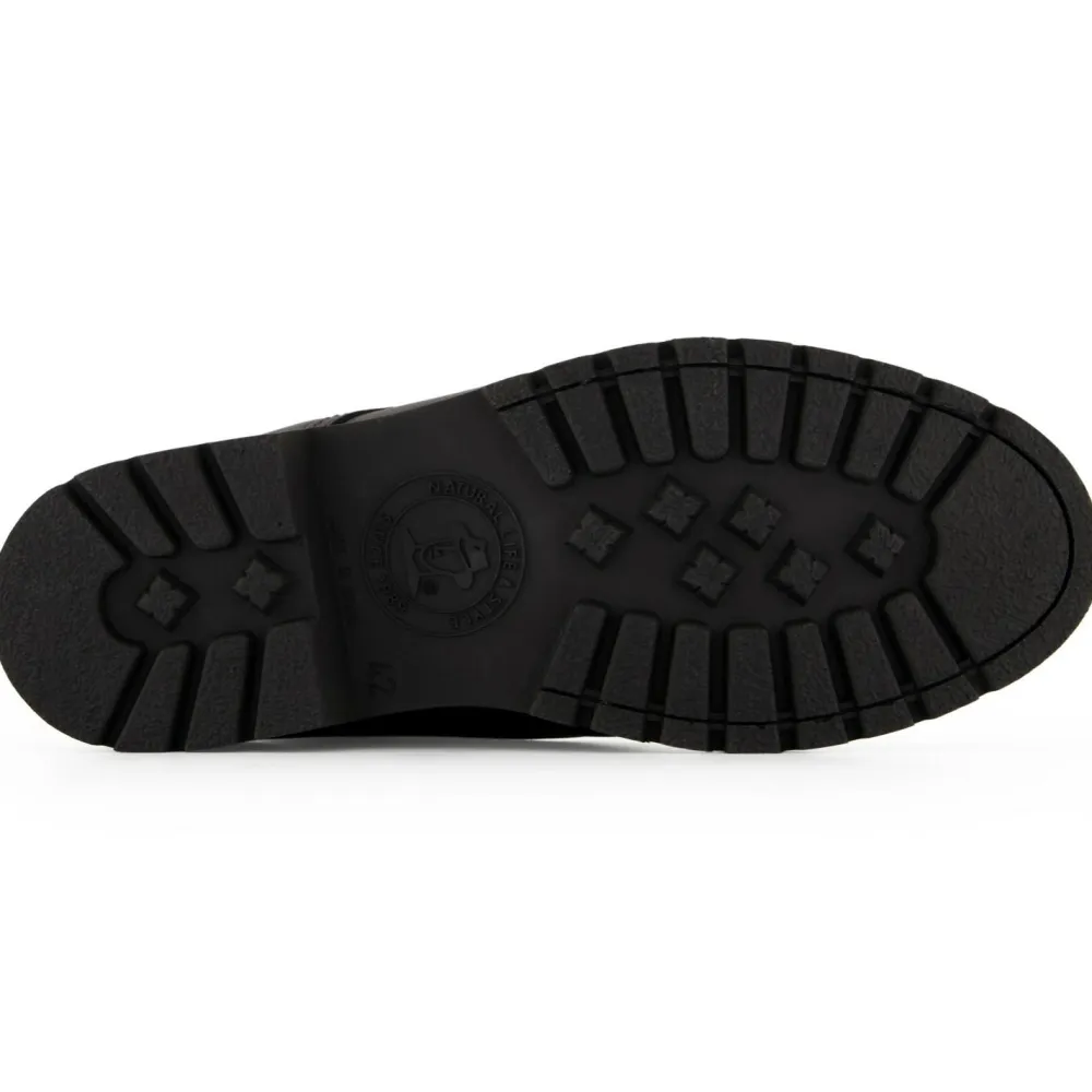 Gefüttert mit kuschligem Lammfell garantiert der knöchelhohe Schuh eine wohlige Wärme und die herausnehmbare, anatomische Innensohle sorgt für extra viel Komfort. Die flexible Sohle aus Naturkautschuk bietet Trittsicherheit durch Schnee und Matsch. Dank der Schnürung lässt er sich für einen guten Halt ganz individuell binden. Hergestellt wurde der moderne Schuh in Spanien, dadurch hat der Panama 03 Igloo C25 nur kurze Wege hinter sich, aber ganz bestimmt noch ganz viele vor sich.