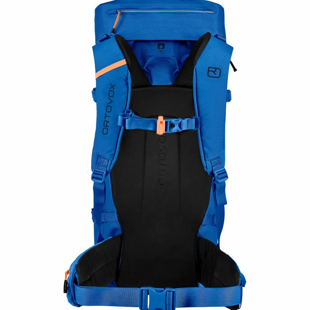 Ein Rucksack, der keine Kompromisse eingeht und für anspruchsvolle Alpinisten gedacht ist, die bei allen Bedingungen am Berg unterwegs sein möchten: der Peak 40 Dry von Ortovox! Der Tourenrucksack eignet sich sowohl für hochalpine Gipfel als auch für spannende Mehrtagestouren. Schon allein aus Sicherheitsgründen sollte der Gipfeltag eigentlich ein sonniger sein – trotzdem ist Regen im Zustieg keine Seltenheit. Dementsprechend wurde dieser Rucksack mit einer herausragenden Wassersäule von 50.000 mm versehen, was bedeutet, dass er absolut wasserdicht ist und der Rucksackinhalt stets trocken bleibt.