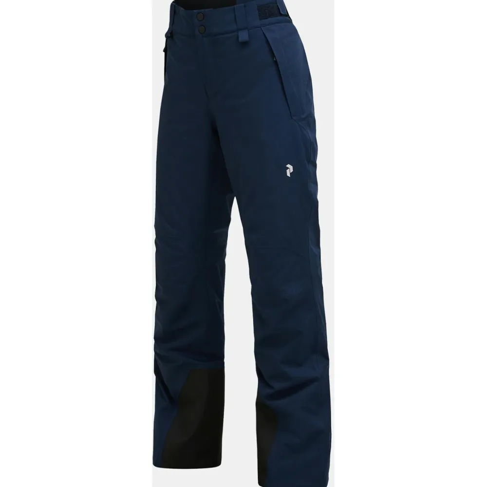 Wenn Du gerade nach einer sportlichen Skihose mit dezentem Design suchst, bist Du bei der Women’s Anima Insulated Pants von Peak Performance genau richtig. Diese Skihose begleitet Dich überwiegend beim Alpinskifahren und kann auch beim gelegentlichen Freeriden punkten. Der Schnitt ist bei diesem Modell nahezu gerade gehalten und bietet Dir im Zusammenspiel mit den vorgeformten Knien eine gute Bewegungsfreiheit. Zusätzlich kannst Du den Bund der Hose mittels Klettverschluss individuell anpassen.