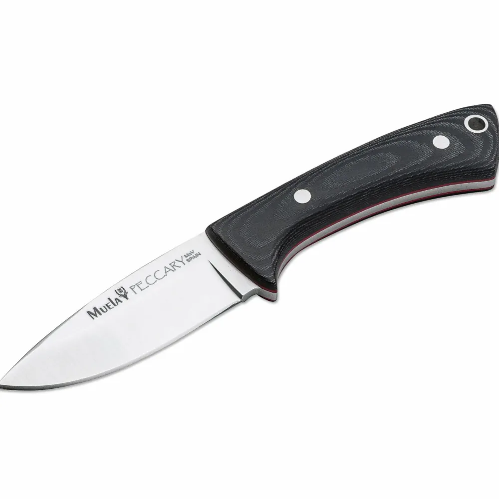 Das Muela Peccary Micarta Black ist ein robustes und unverwüstliches Messer für Outdoor-Abenteuer jeglicher Art. Der geschwungene Dreifingergriff aus Micarta liegt gut in der Hand. Die Droppoint-Klinge bietet vielseitige Nutzbarkeit beim Schneiden und Schnitzen. Das Fahrtenmesser ist ein zuverlässiger Begleiter für Abenteurer und Outdoor-Enthusiasten!