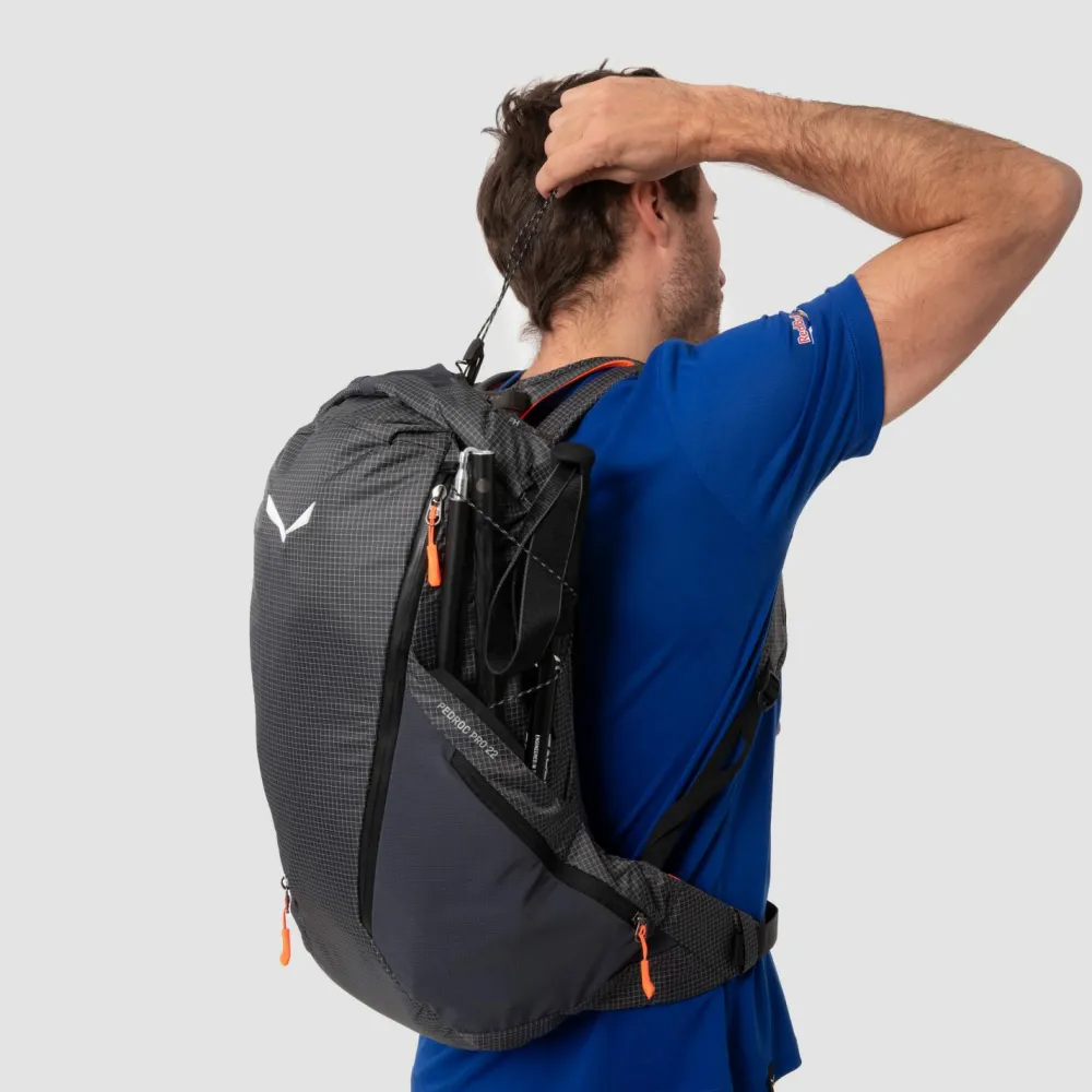 Über das einhändig bedienbare Kompressionssystem lässt sich das Volumen des Wanderrucksack stufenlos regulieren. Eine Schlüssel-Halterung sowie das praktische Wertsachenfach sorgen im Inneren für Ordnung. Reflektierende Details auf der Außenseite erhöhen die Sichtbarkeit bei schlechten Wetter. Eine Halterung für Deine Wanderstöcke sowie die wasserabweisenden Reißverschlüsse machen den Pedroc Pro 22 von Salewa zur ersten Wahl für Deine nächste Bergtour.