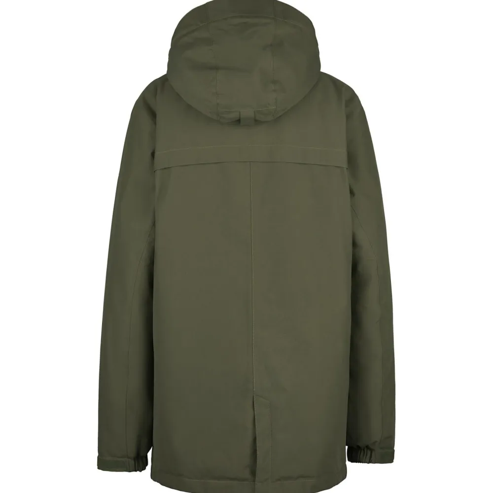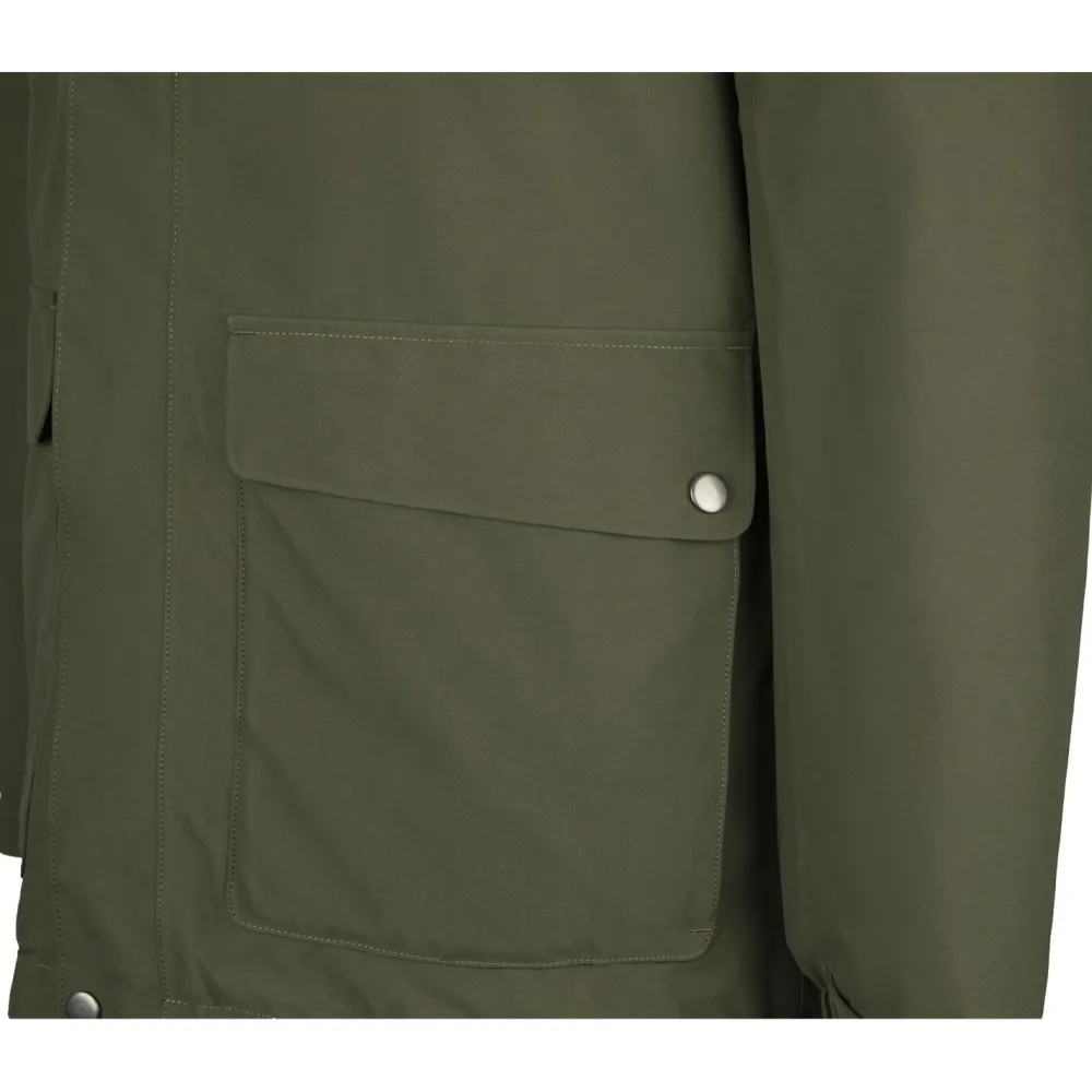 Das Außenmaterial besteht aus strapazierfähigem Recycling-Polyester und ist hochwertig verarbeitet. Eine wasserdichte und atmungsaktive Membran verhindert effektiv das Eindringen von Nässe, ohne dass sich der Schweiß unter dem Material staut. So bleibt der Parka auch bei Anstrengung angenehm zu tragen. Futter und Wattierung halten auch bei kalten Temperaturen angenehm warm. Eine verstellbare Kapuze verbessert den Schutz vor Kälte und Regen zusätzlich. Praktische Reißverschlusstaschen auf der Vorderseite bieten zudem sicheren und bequemen Stauraum für Smartphone, Geldbörse und andere Kleinigkeiten.