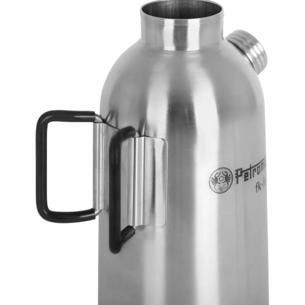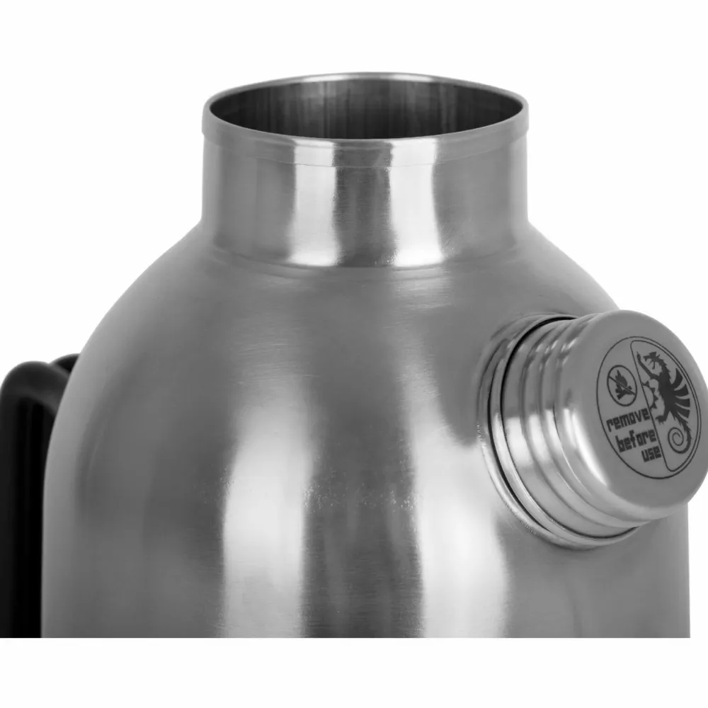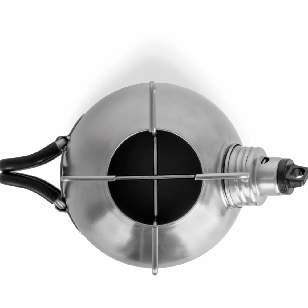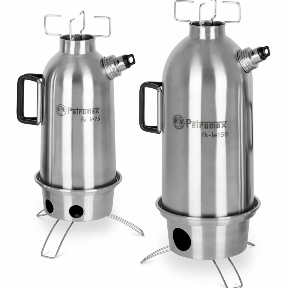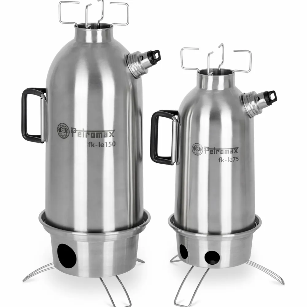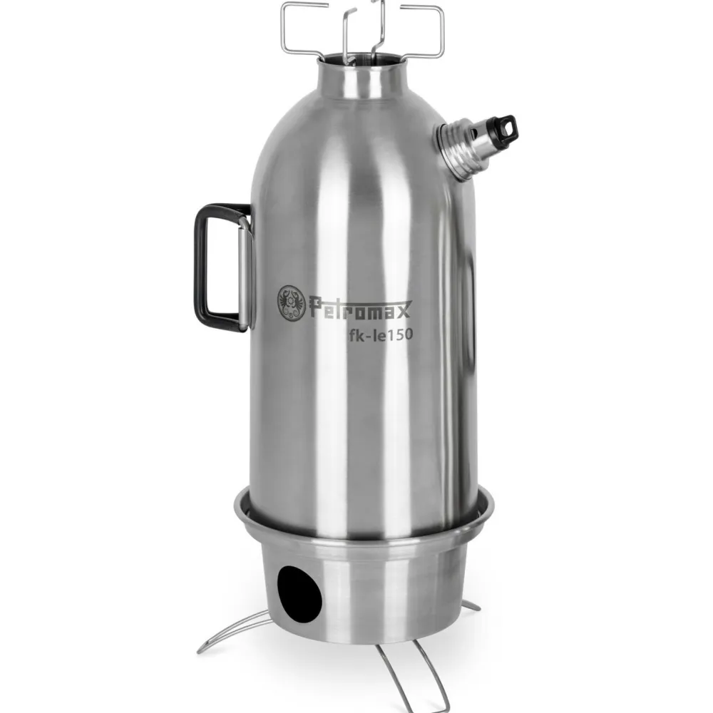 Die Feuerkanne Edelstahl von Petromax wird direkt über offenem Feuer erhitzt. Dank Kamineffekt steigt die Wärme unmittelbar auf. Das Wasser in der Doppelwand wird in wenigen Minuten zum Kochen gebracht. Ist der Siedepunkt erreicht, ertönt die Dampfpfeife. Mit einem Aufsatz üder der Kannenöffnung kann die entweichende Wärme zusätzlich genutzt werden. Dank den drei Füßen hinterlässt die Kanne keine Brandstellen.