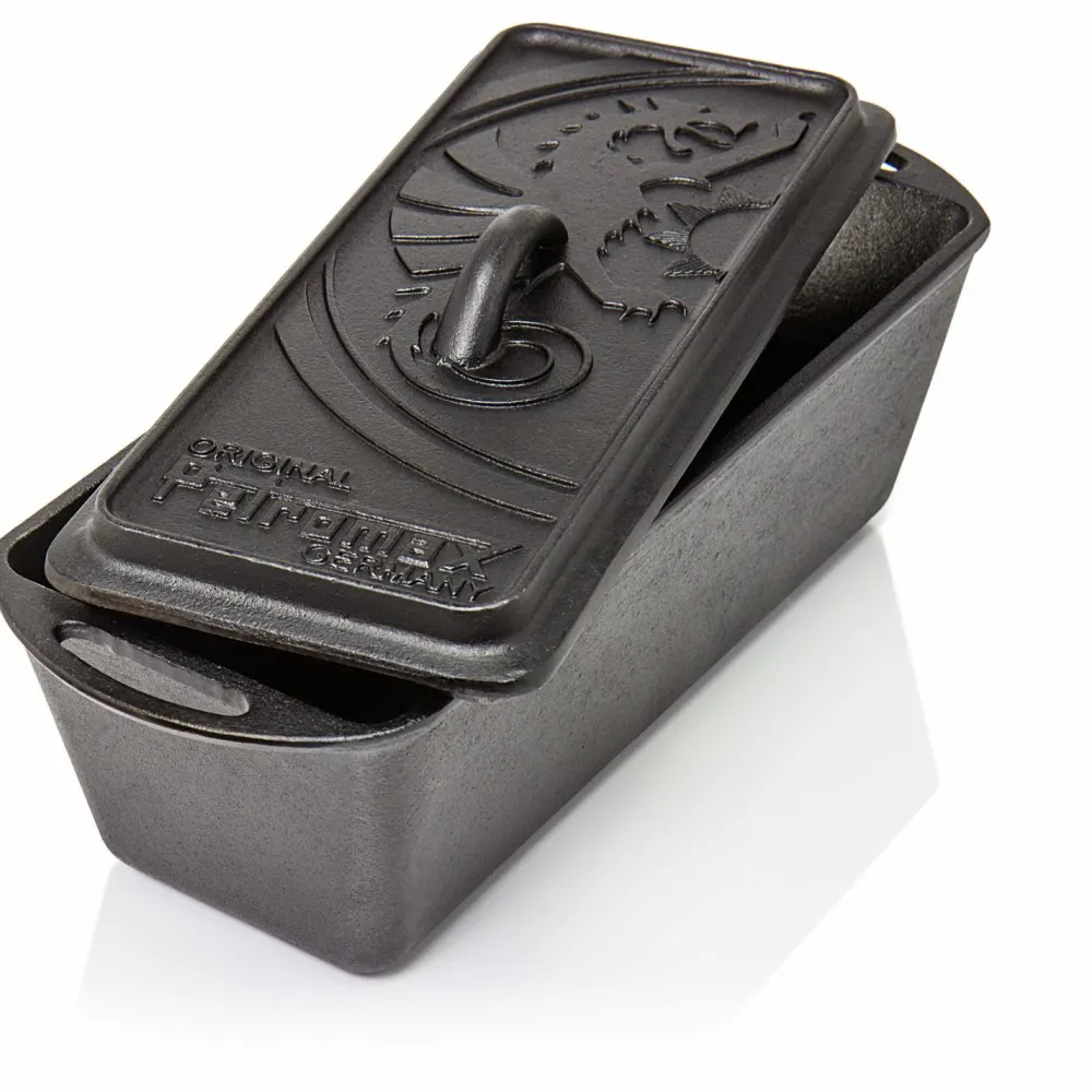 Wie für eine Kastenform typisch, eignet sie sich hervorragend für allerlei Gerichte, vom Brot backen bis zum Nudelauflauf. Das tolle an der Petromax Kastenform ist ihre Robustheit. Dank massivem Gusseisen verteilt sich die Hitze gleichmäßig und hält diese auch für längere Zeit. Im Outdoor-Einsatz lässt sich der Deckel zudem praktischerweise mit Glut oder Holzkohle bestücken, sodass die perfekte Rundumhitze entsteht. Ideal zum Schmoren und Garen, auch für den Einsatz im Backofen geeignet.