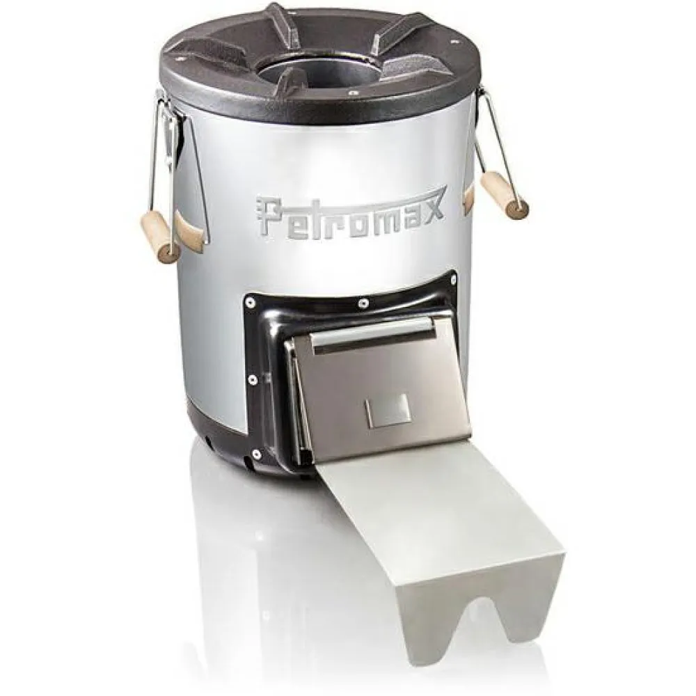 Für alle Liebhaber luxuriöser Outdoorkocher: Der Raketenofen rf 33 aus dem Hause Petromax. Stilechtes Edelstahl-Design trifft auf hocheffiziente Verbrennung. Der Ofen kombiniert wirkungsvoll Holzvergaserprinzip und Kamineffekt. So ermöglicht der Raketenofen geringen Verbrauch bei hoher Hitzeentwicklung. Mit der integrierten Topfauflage aus Gusseisen somit ideal zum Kochen im Freien geeignet. Darauf finden sowohl Feuertopf, als auch Pfannen Platz. Entscheidend bei der Konstruktion ist das L-förmige Design: Über die ausziehbare Ablage wird das Brennmaterial nachgeschoben, sodass sich die Hitze in der Brennkammer bestmöglich regulieren lässt. Das isolierte Gehäuse verhindert dabei ungewollten Wärmeverlust. So kann ein Großteil der entstehenden Energie auch tatsächlich für das Zubereiten der Speisen genutzt werden. Praktisch ist auch der Griff aus Holz, der das Anheben und Transportieren um einiges erleichtert. Der rf 33 ergänzt die persönliche Campingküche damit um ein hochwertiges Utensil, an welchem jeder Fan rustikaler Küche lange Zeit seine Freude haben wird.