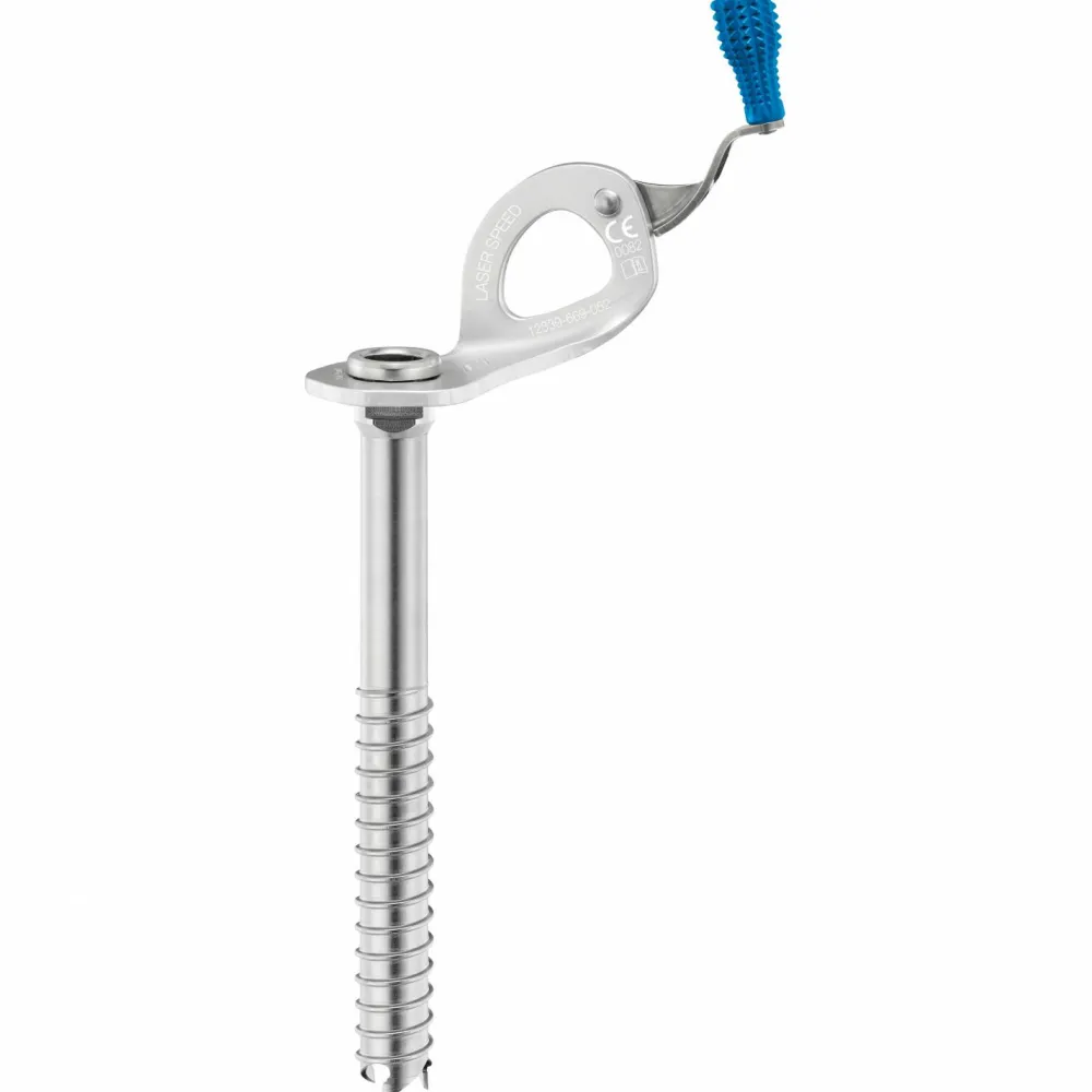 Die Laser Speed Eisschraube von Petzl lässt sich schnell und effizient ins Eis schrauben. Die Form der Bohrkrone mit den drei Zähnen unterstützt dabei schnelles Greifen im Eis. Der Schaft und die Bohrkrone aus Stahl machen die Eisschraube besonders widerstandsfähig und robust. Die integrierte, umklappbare Kurbel aus Aluminium sorgt für schnelles und einfaches Setzen.