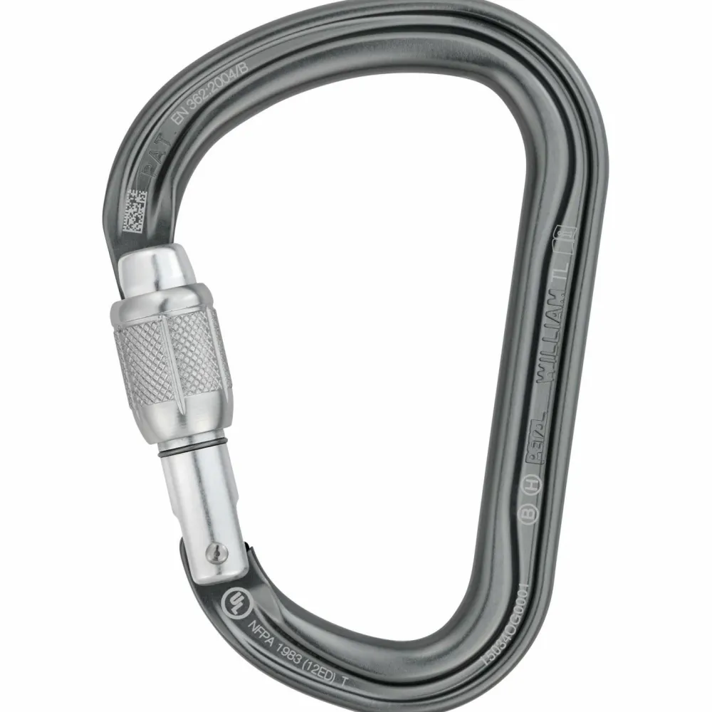Ein echter Allrounder für jeden Bergsportler – der Williams Screw-Lock von Petzl. Der Schraubkarabiner kommt in der klassischen birnenfömigen HMS-Form. Er eignet sich zum Sichern mit Halbmastwurf, oder zur Kombination mit Sicherungsgeräten. Selbstverständlich kann er auch beim Aufbau eines Standplatzes verbaut werden.Durch die heißgeschmiedete Konstruktion kann der William Screw-Lock so gestaltet werden, dass er ein geringes Gewicht und hohe Stabilität kombiniert. Das wird erreicht, indem an weniger belasteten Stellen weniger Material zum Einsatz kommt. Die entscheidenden Stellen sind entsprechend verstärkt und die Kontaktstellen zum Kletterseil sind auch breiter ausgeführt. Die Keylock-Nase verhindert ein Verhängen des Karabiners in Hakenösen oder Schlingen – beim Williams Screw-Lock wurde an alles gedacht!