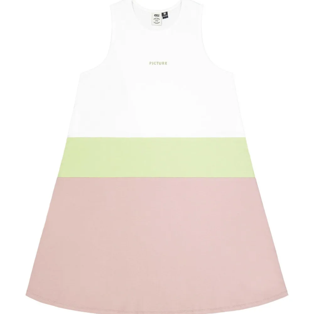 Mit einem sportlichen und stylischen Design kann das Women’s Flowa Dress von Picture haushoch punkten. Es ist ärmellos, verfügt aber über etwas breitere Träger und einen hohen Rundhalsausschnitt, wodurch eine angenehme Passform entsteht. Das Hauptaugenmerk liegt bei dem A-Linien-Kleid jedoch auf der auffälligen, dreifarbigen Gestaltung. Dennoch sind die praktischen Seitentaschen und kleine optische Highlights, wie das gewebte Logo auf der Vorderseite, nicht zu vergessen.