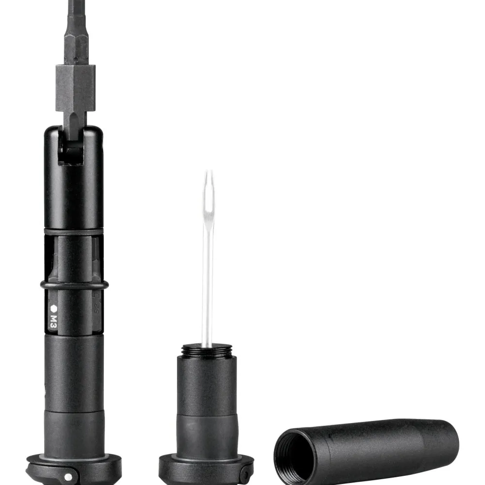 Der winkelverstellbare Bithalter sorgt beim Schrauben mit dem Topeak Plug’n Tool Roadie für ergonomisches Arbeiten an Deinem Fahrrad. Das Fahrradwerkzeug lässt sich bequem in Deinem Rennrad-Lenker verstauen und ist durch den ausklappbaren Griff aus robustem Material bei Bedarf rasch zur Hand.