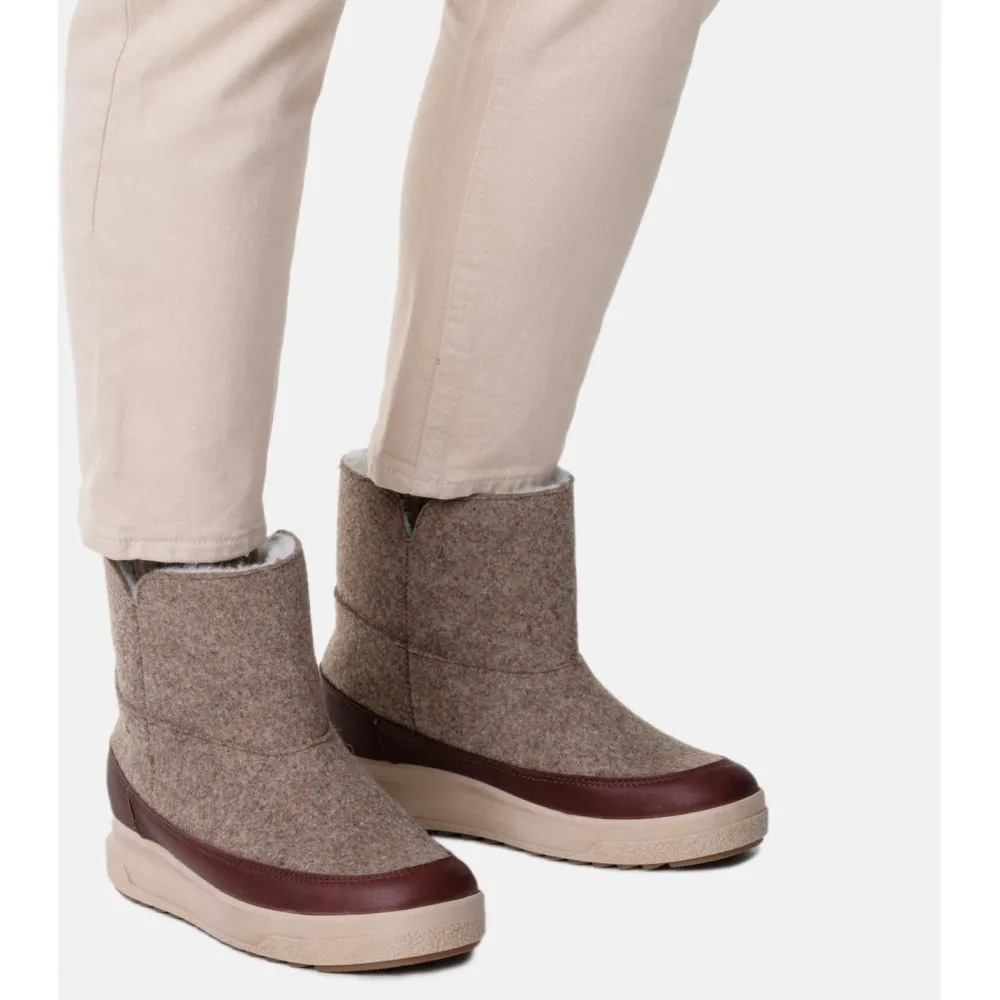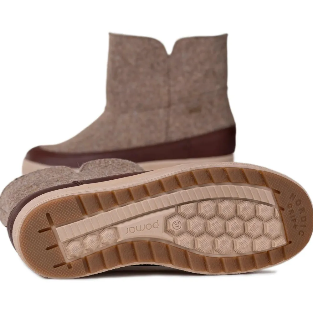 Die Women’s Niva GTX Ankle Boot von Pomar verbindet nordische Handwerkskunst mit moderner Technologie. Mit der GORE-TEX-Membran bist Du bei Schnee und Regen zuverlässig geschützt – Deine Füße bleiben trocken und angenehm temperiert. Das Obermaterial aus Wollfilz und Leder sorgt für natürliche Isolierung, während das Lammfellfutter ein warmes Fußklima garantiert. Pomar steht seit über 60 Jahren für Qualität und Komfort aus Finnalnd, damit Du auch an frostigen Tagen entspannt durch den Alltag gehst.