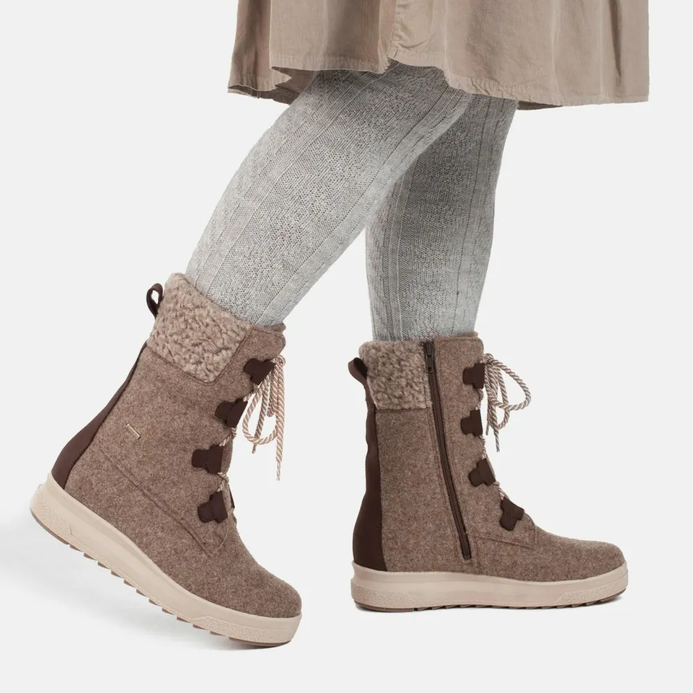 Die Women’s Reki GTX Boots punkten nicht nur mit Wetterschutz, sondern auch mit Atmungsaktivität und Geruchshemmung. Der Wollfilz sorgt dafür, dass die Füße immer gut temperiert bleiben, während die Gummi-Laufsohle sicheren Halt auf verschiedensten Untergründen bietet. Auch bei langen Tragezeiten bleibt der Tragekomfort erhalten.