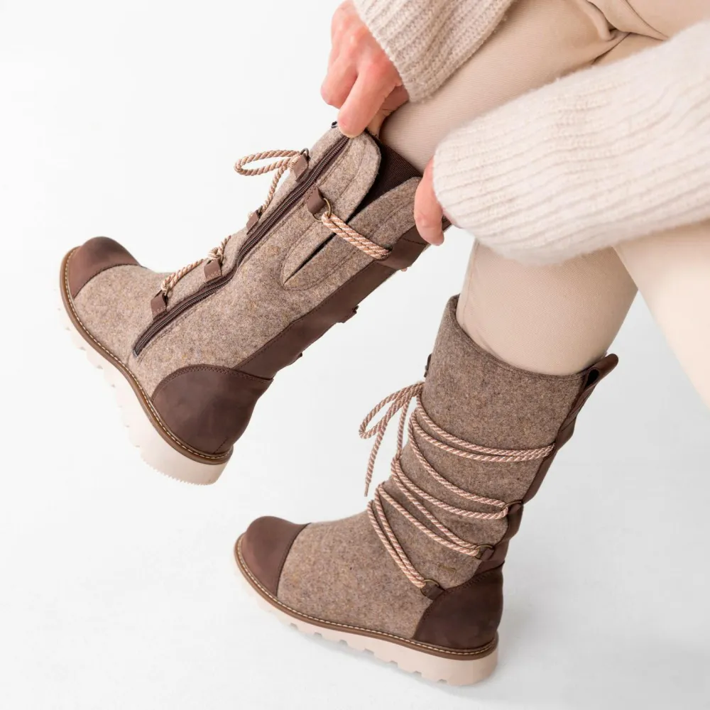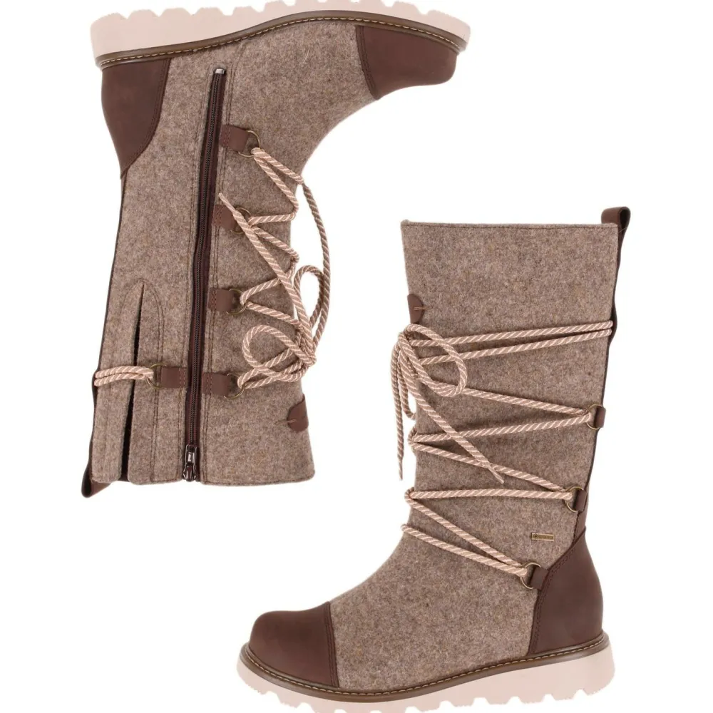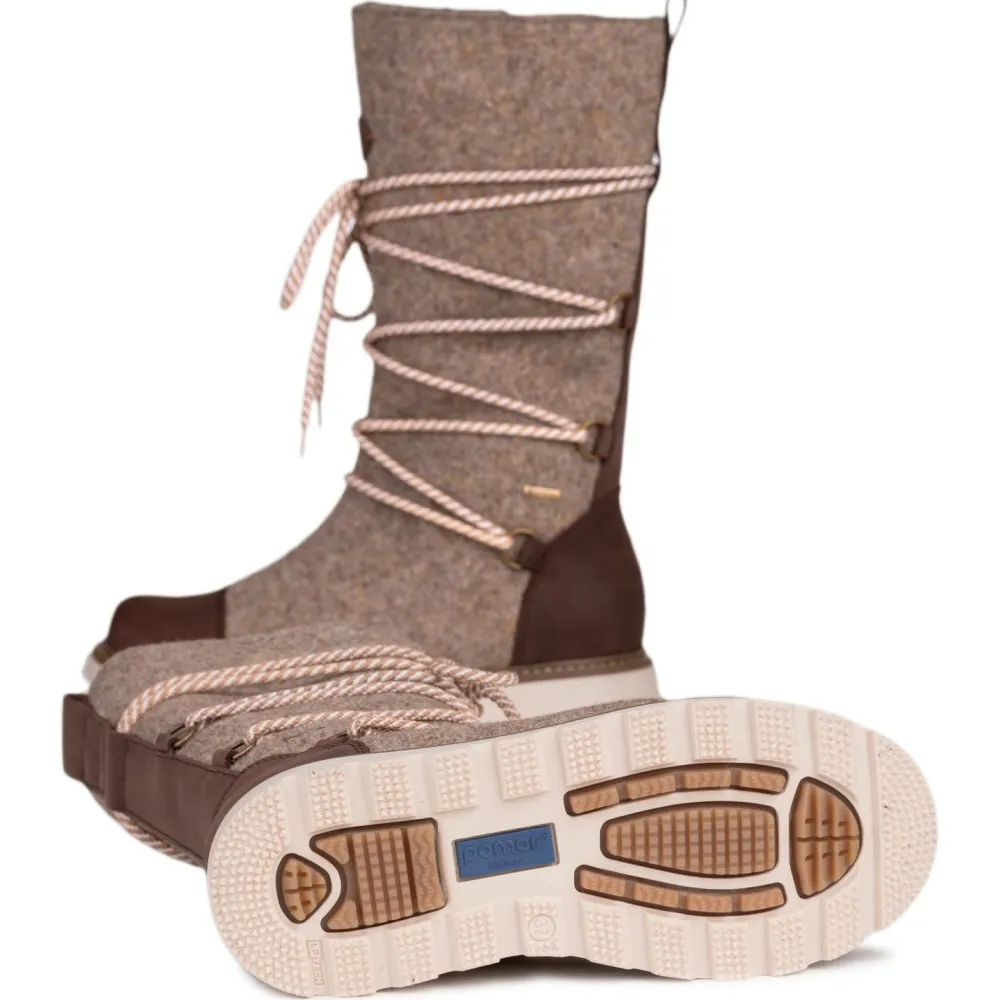 Mit dem Women’s Ruka GTX Boot von Pomar bist Du stilvoll und geschützt unterwegs – selbst bei frostigen Temperaturen. Das moderne Design mit schlanker Silhouette verbindet finnische Tradition mit zeitgemäßer Funktionalität. Das Obermaterial aus Wollfilz mit Verstärkungen aus gewachstem Nubukleder bieten Dir wasser- und schmutzabweisenden Schutz, während der seitliche Reißverschluss und die Schnürung für eine individuelle Passform sorgen.