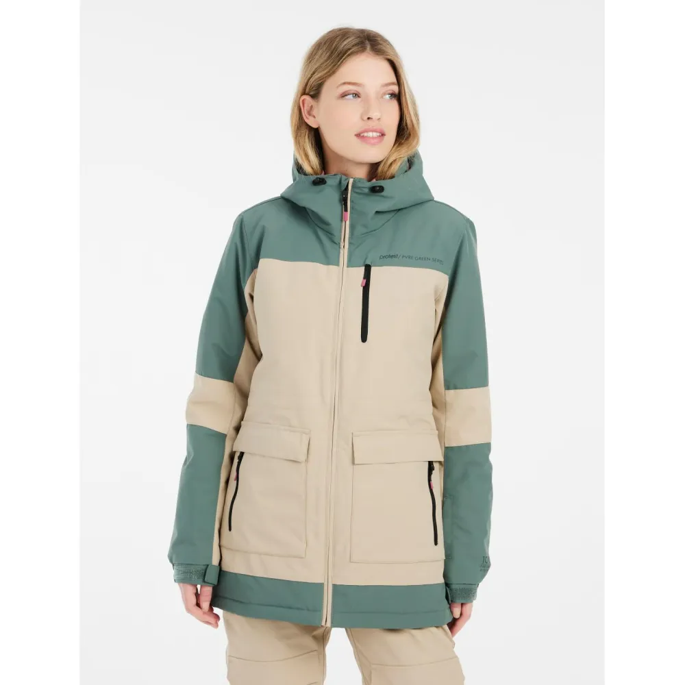 Die Kapuze ist bei der Women’s PRTBackup Snowjacket verstellbar und sitzt somit auch bei schneller Fahrt sicher. Praktisch: Die Skijacke verfügt über mehrere geräumige Taschen, in denen Du alles verstauen kannst, was unterwegs schnell zur Hand sein soll.