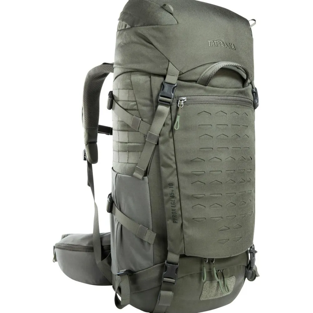 Der Tatonka Pyrox 45+10 BC Trekkingrucksack ist ideal für anspruchsvolle Trekkingtouren und Bushcraft-Aktivitäten. Hergestellt aus robustem Cordura-Material, bietet er mit einem Volumen von 55 Litern genügend Stauraum für Deine Ausrüstung.