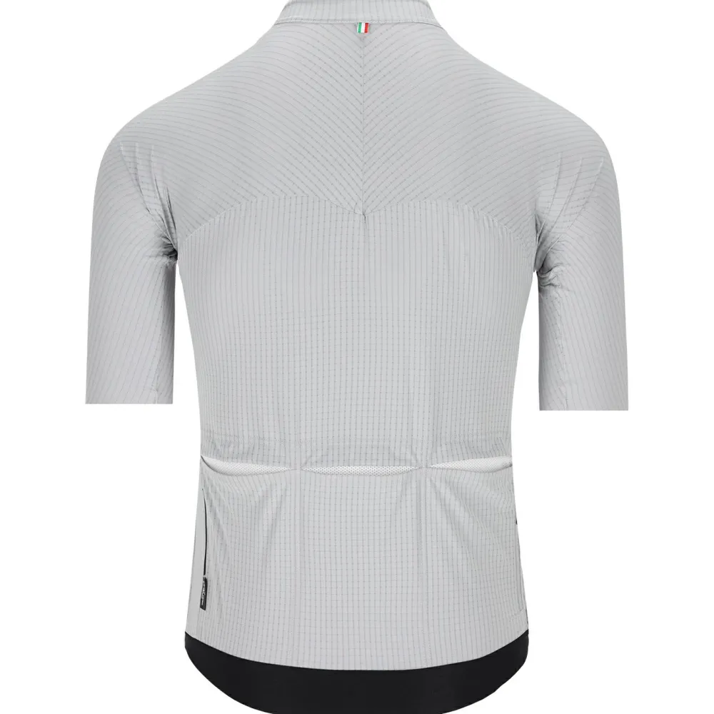 Mit seinem einzigartigen Material und minimalem Einsatz von Nähten bietet das Q36.5 Dottore Pro Jersey aero-optimierte Performance. Das Trikot besteht aus dem schnelltrocknenden, dreidimensionales Dottore Pro Gewebe, das auch bei harten Tagen im Sattel für eine effiziente Temperaturregulierung sorgt. Die spezielle Konstruktion verwendet proprietäres Gewebe, das Silberfäden in das Material einwebt, was den Feuchtigkeitstransfer verbessert. Das verwendete Material transportiert Feuchtigkeit 50 Prozent schneller als jedes andere Polyestergewebe. Die Zugabe von Silberfäden bietet zudem antistatische Eigenschaften, welche der Muskelermüdung entgegenwirken.