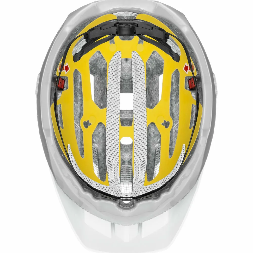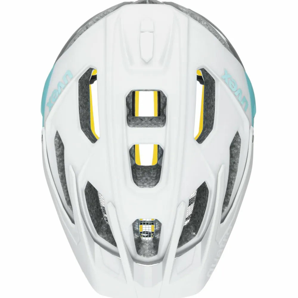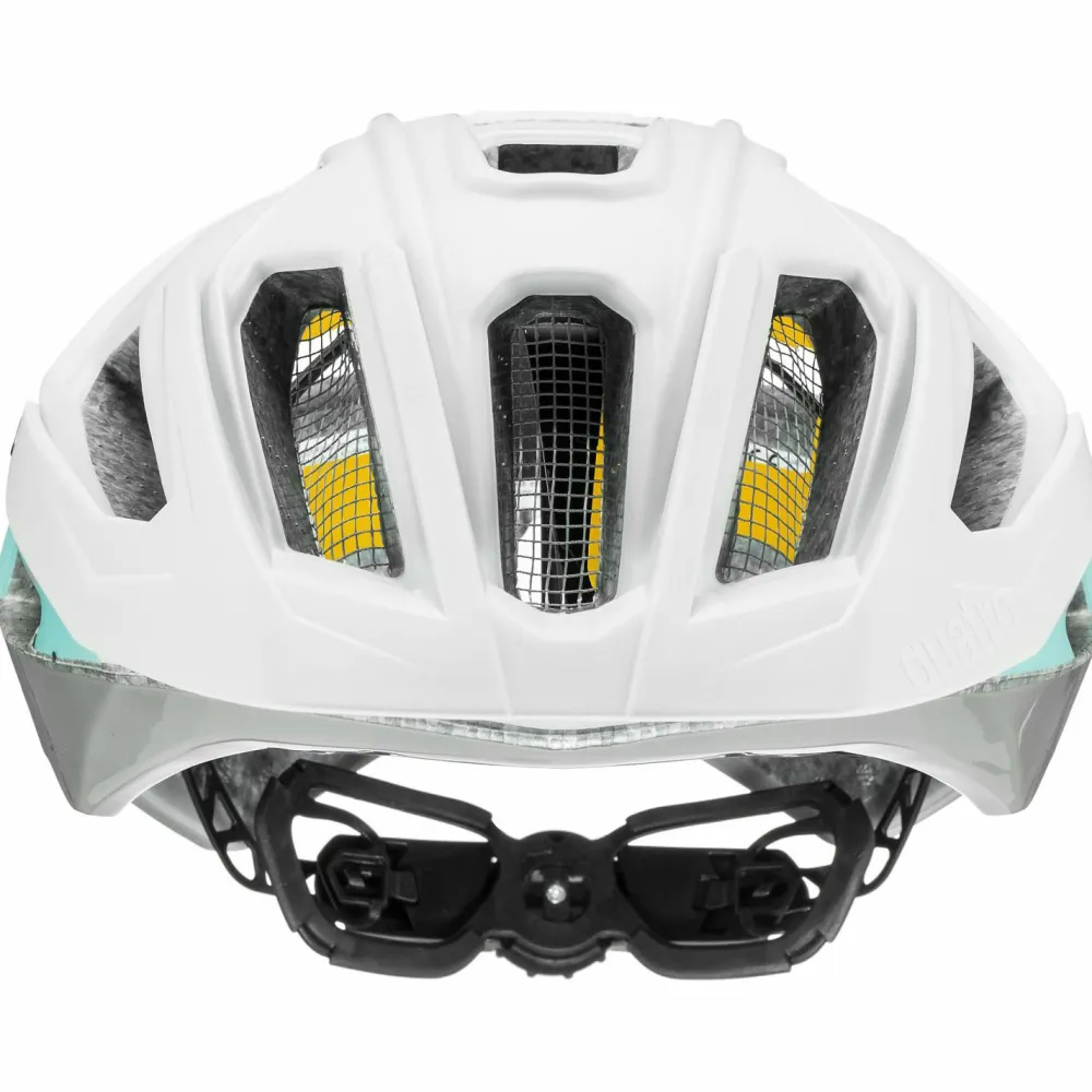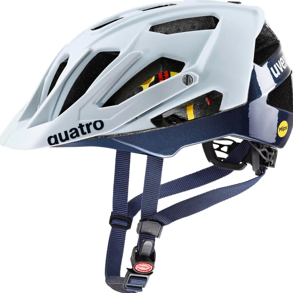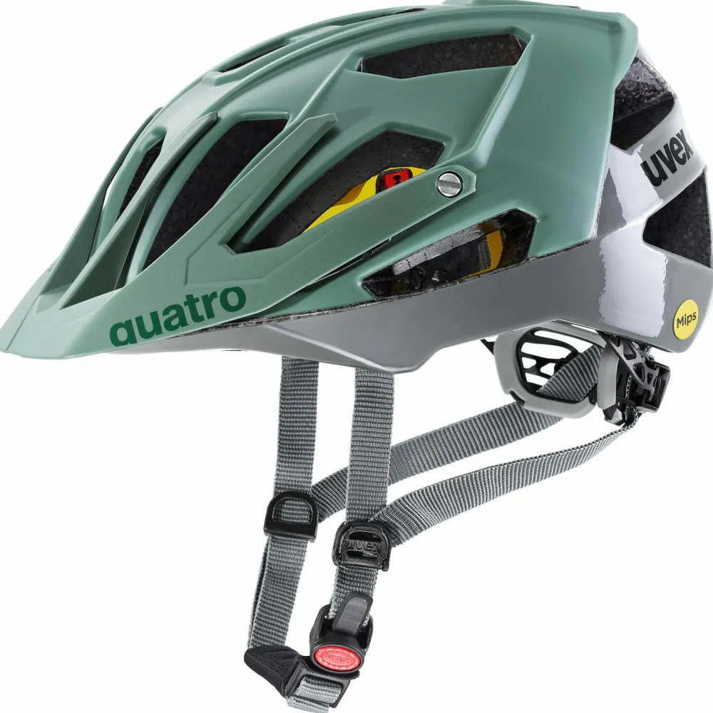 Der Quatro CC MIPS von Uvex ist ein Radhelm, der sich bestens zum Mountainbiken empfiehlt und durch eine herausragende Passform sowie Sicherheit überzeugt. Hergestellt wurde er im sogenannten Double-In-Mold-Verfahren bei der EPS-Schaum mit einer Polycarbonatschale fusionieren. Für zusätzliche Sicherheit sorgt das MIPS-System: Im Falle eines abgewinkelten Aufpralls kann MIPS schädliche Rotationskräfte reduzieren, die auf das Gehirn übertragen werden können.