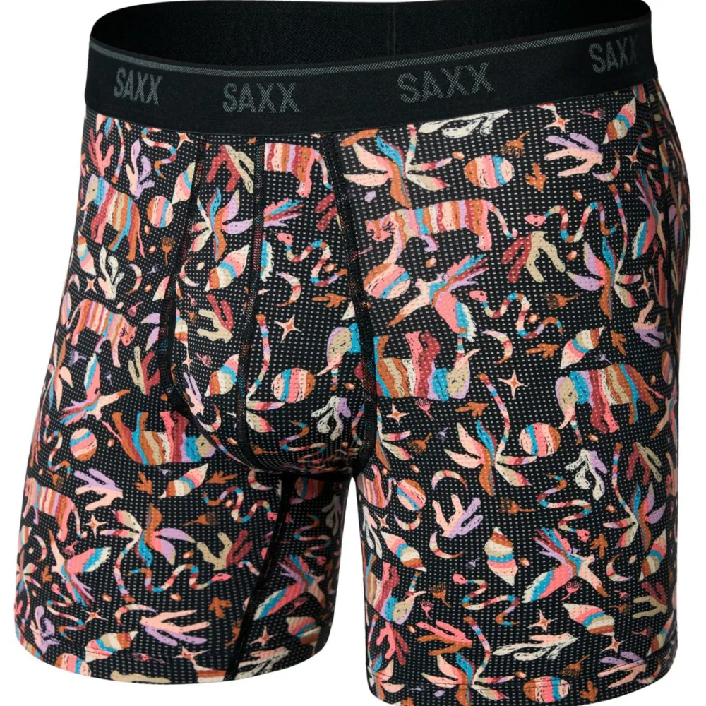 Die Quest Quick-Dry Mesh Boxer Brief Fly von Saxx ist eine funktionale Unterhose für alle, die viel draußen unterwegs sind – ob auf Reisen, beim Wandern oder im Alltag. Das extra schnell trocknende Mesh-Material sorgt für ein dauerhaft frisches Tragegefühl, auch wenn Du mal ins Schwitzen kommst. Dank der DropTemp Cooling-Technologie bleibt Dein Körperklima angenehm kühl – ganz ohne chemische Zusätze. Die atmungsaktive Struktur unterstützt die Luftzirkulation, während die einseitige Feuchtigkeitsableitung dafür sorgt, dass Schweiß effektiv vom Körper wegtransportiert wird.