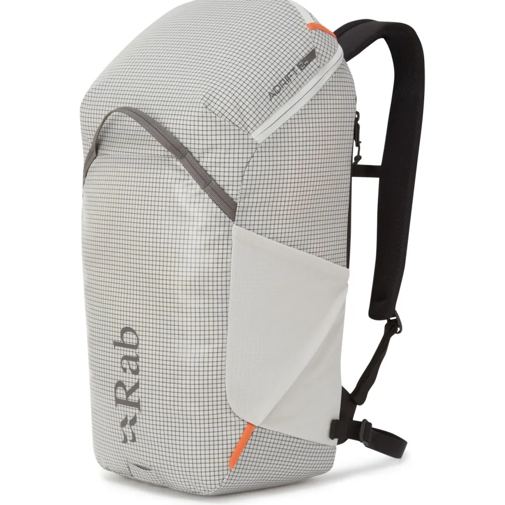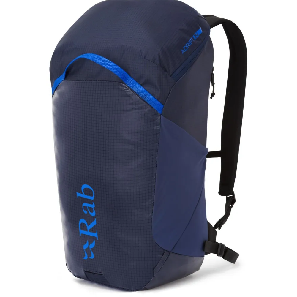 Der Adrift 24-Rucksack von Rab ist der ideale Begleiter für alle Abenteuer, vom kurzen Nachmittags-Hike bis hin zu Abenden an den Boulder- Felsen. Mit dem 210D Nylon Ripstop-Obermaterial und der Hydroshield Dura-Beschichtung hält er den Anforderungen spielend stand, denn dadurch ist er sowohl robust und langlebig, als auch etwas vor Feuchtigkeit geschützt. Mit einem Volumen von 24 Litern und einem gepolsterten Laptopfach für Geräte bis 15 Zoll ist der Rucksack perfekt geeignet für den Übergang vom Büro in die Natur.Die durchdachte Konstruktion umfasst zahlreiche Fächer, darunter ein internes Tabletabteil, mehrere Organisationsmöglichkeiten, seitliche Netztaschen für Wasserflaschen und eine praktische obere Reißverschlusstasche. Für zusätzlichen Komfort und die Möglichkeit individueller Anpassung sorgt der abnehmbare Hüftgurt.