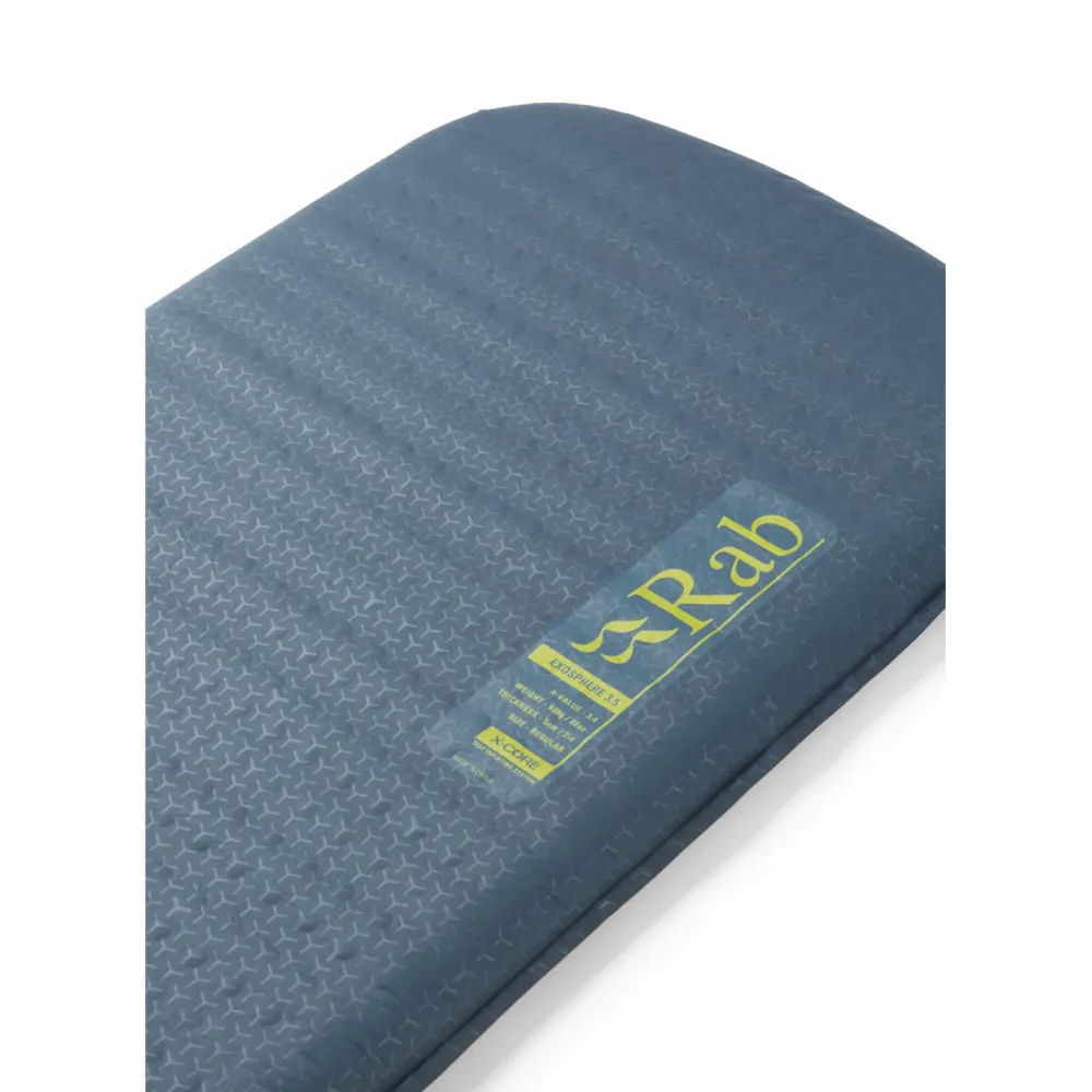 Die Exosphere 3.5 von Rab ist eine selbstaufblasende Allround-Isomatte für Camping-Urlaube oder Festivals. Mit einem R-Wert von 3,4 bietet sie Dir bis +5 Grad Celsius eine gute Wärmeisolierung. Grund dafür ist der spezielle X-Core-Schaum. Dieser hält warm und sorgt zugleich für Bequemlichkeit. So kommen in der Exosphere 3.5 der Komfort einer Luftmatratze und die Isolationsqualitäten des Schaumstoffs zusammen und ergeben eine zugleich weich bettende und wirkungsvoll wärmende Schlafunterlage. Der Mechanismus zum Aufblasen ist auch noch hundemüde und erschöpft leicht zu bedienend und sorgt für eine rasche Befüllung der Matte mit Luft.