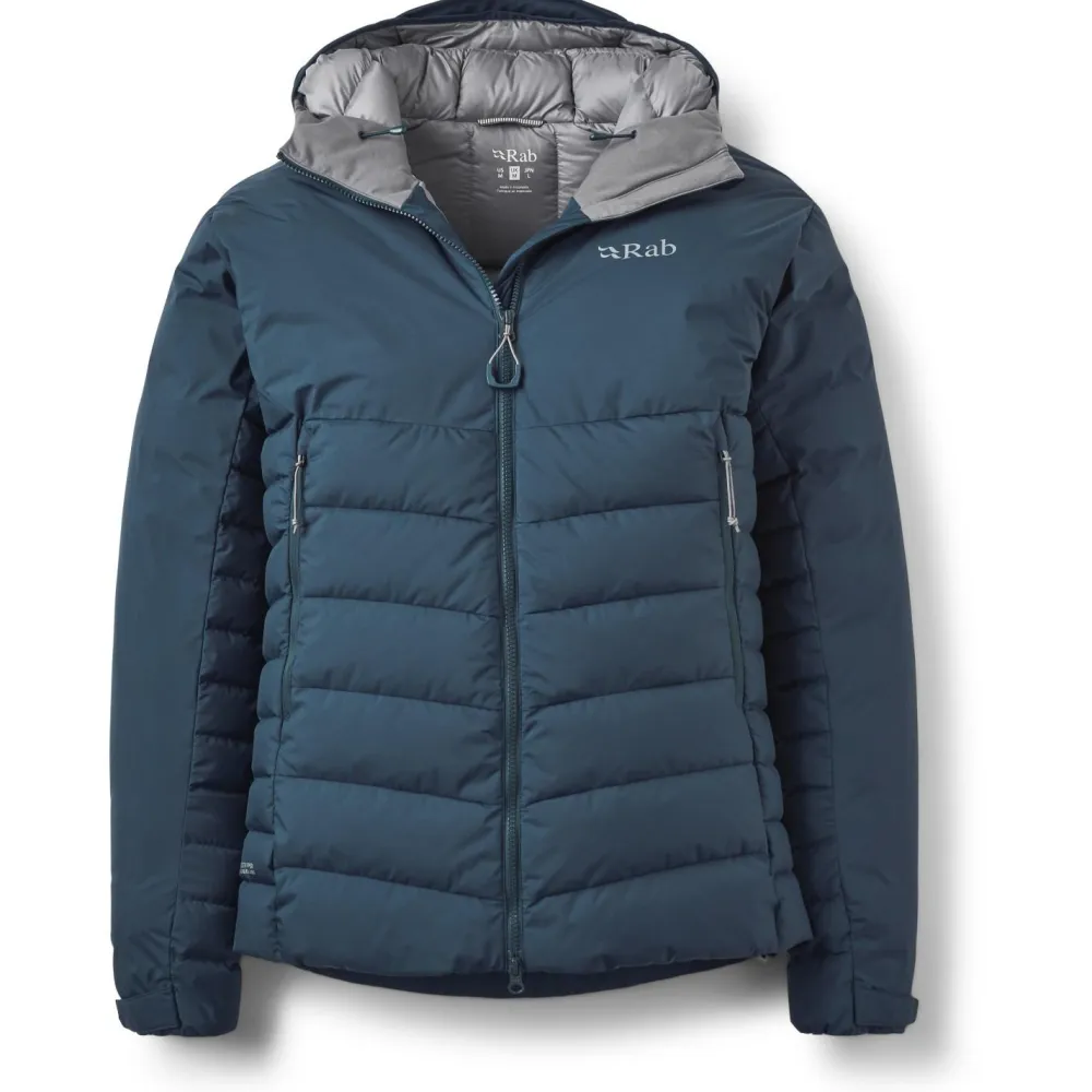 Zu dieser voll flexiblen Zuverlässigkeit trägt auch die perfekt auf alpinistische Bedürfnisse abgestimmte Ausstattung bei. Zu ihr gehört eine voll verstellbare, helmtaugliche und daunengefüllte Kapuze, die mit versteiftem Schirm für erhöhten Schutz bei frei bleibendem Sichtfeld sorgt. Auch der 2-Wege YKK VISLON-Frontreißverschluss sorgt mit seiner isolierten Reißverschlussblende für verlässliche Funktion und Komfort.