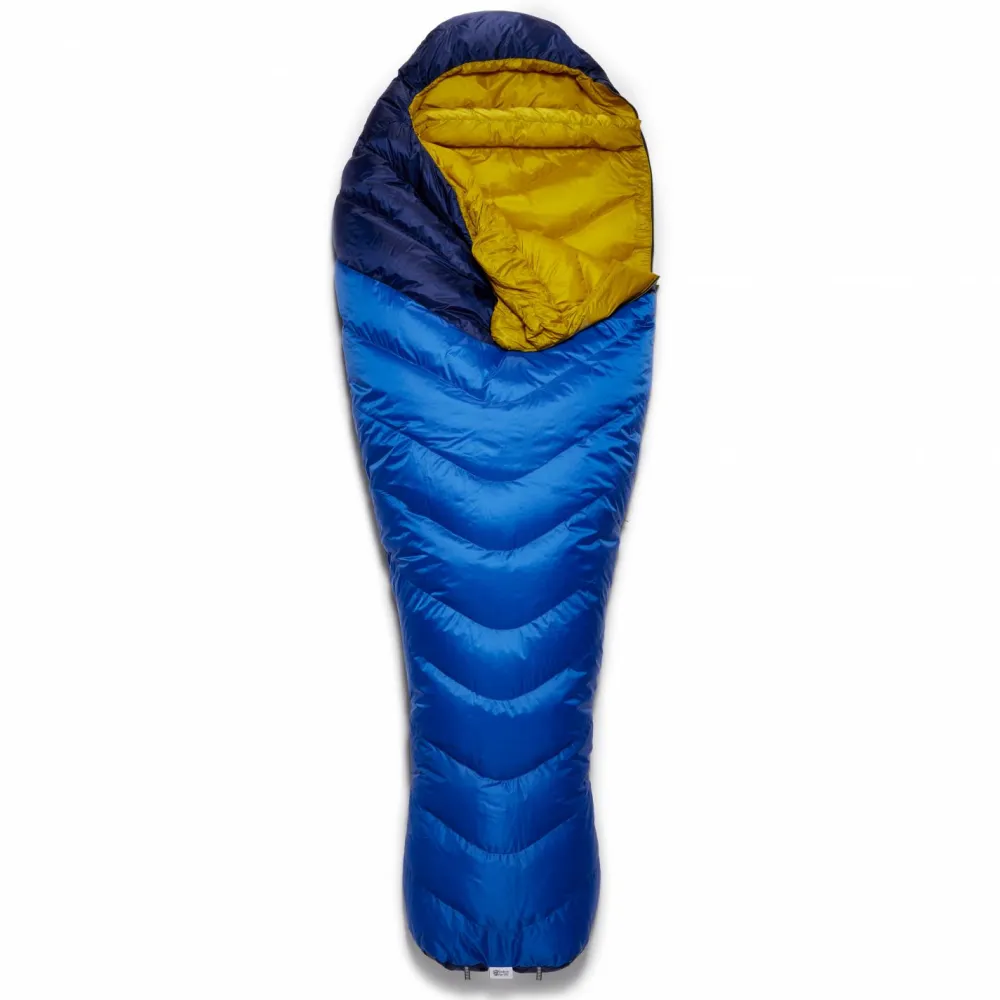 Dank Pertex Quantum ist das Außenmaterial robust und wasserabweisend. Die Daunenfüllung mit hoher Bauschkraft bietet einen exzellenten Wärmekomfort, ohne negativ ins Gewicht zu fallen. Trapezförmige Daunenkammern geben Dir Bewegungsfreiheit und verhindern Kältebrücken. Der verstellbare Wärmekragen verhindert den Wärmeverlust effektiv. Die geräumige Fußbox erlaubt Dir eine gemütliche Schlafposition. In der Innentasche bringst Du Wertsachen sicher unter. Ein komfortabler Partner für sommerliche Nächte!