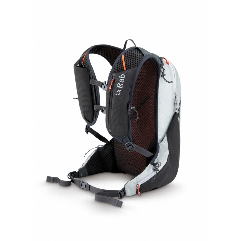Das robuste ROBIC Nylon Ripstop mit wasserabweisenden Beschichtungen schützt Deine Ausrüstung vor Witterung und Abnutzung, während das geformte Rückenteil für ein angenehmes und flexibles Tragegefühl sorgt. Der doppelte Brustgurt gibt Dir sicheren Halt, selbst bei hohem Tempo. Die Z-Pole-Halterung und der Front-Stash bieten praktischen Platz für Trekkingstöcke und schnell erreichbare Utensilien. Für schnelle Trinkpausen unterwegs ist die spezielle Flask-Stash-Tasche am Tragesystem optimal geeignet. Und dank der cleveren Taschenanordnung hast Du auch unterwegs alles im Griff.