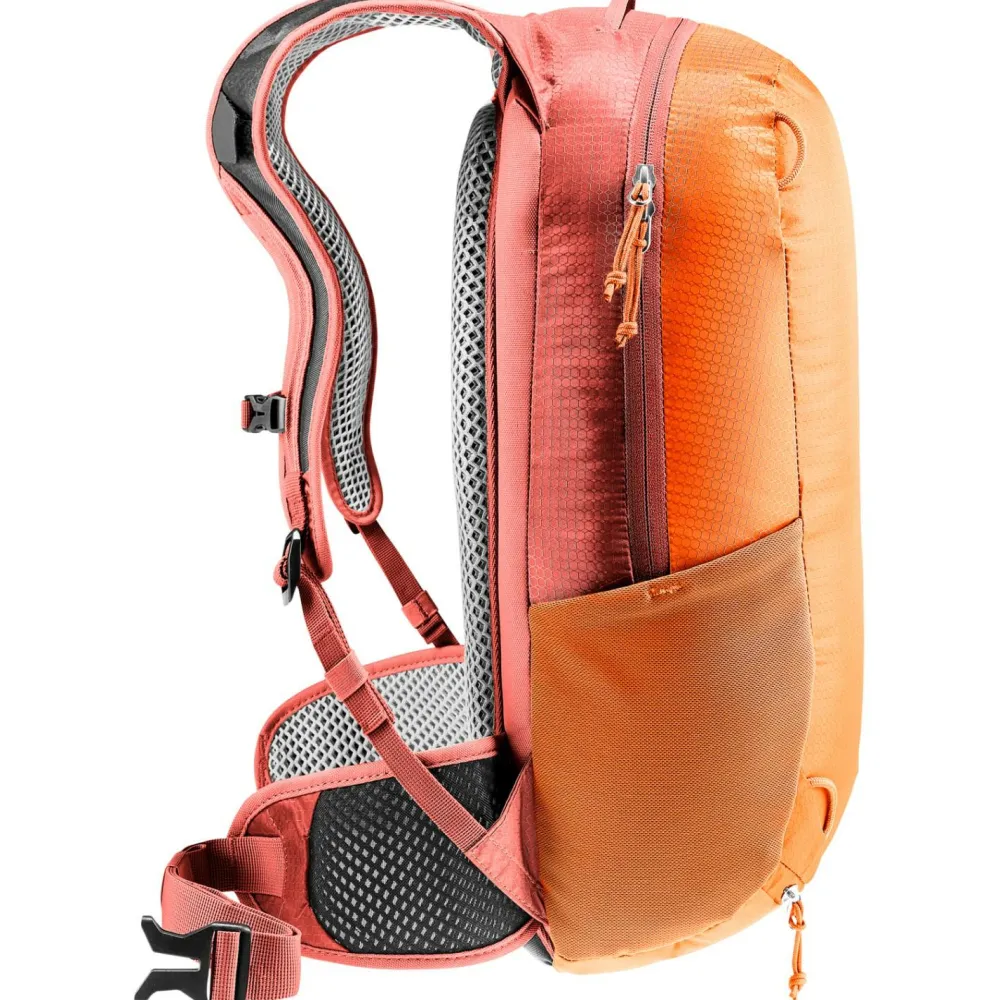 Mit dem Race 12 Bike-Rucksack von deuter wird Deine nächste Mountainbike-Tour in den Bergen zu einer runden Sache. Der leichte Fahrradrucksack ist mit dem atmungsaktiven Airstripes Tragesystem ausgestattet. Das luftige Mesh-Gewebe im Rückenbereich sowie an den Schulterträgern leitet Feuchtigkeit gezielt nach außen hin ab. Deine Sonnenbrille lässt sich bequem an der Brillenhalterung am Schulterträger befestigen.